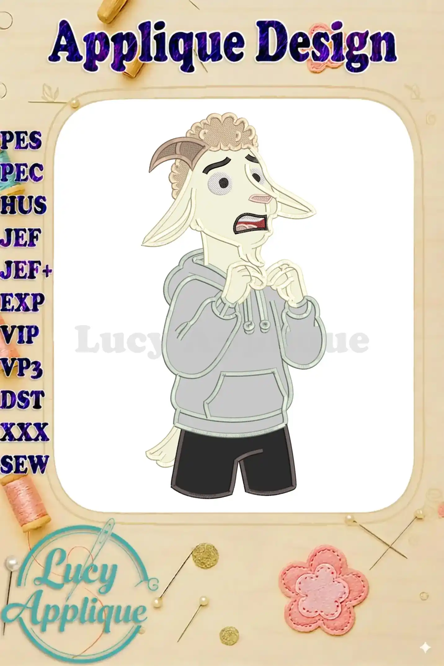 Distressed Goat Applique Embroidery Designs in Grey Hoodie