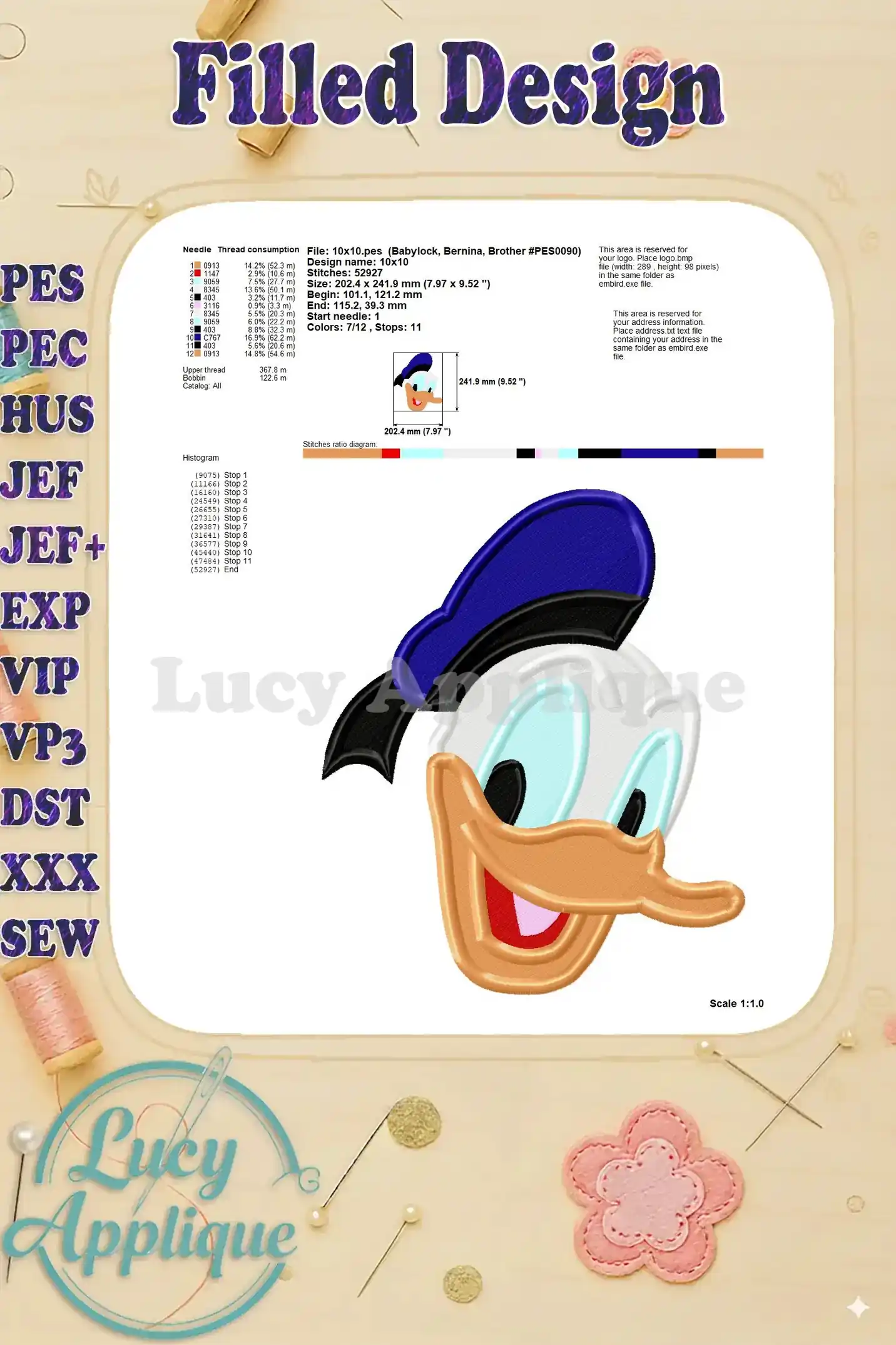 Donald Duck Head Fill Machine 01 Embroidery Design – Instant Download
