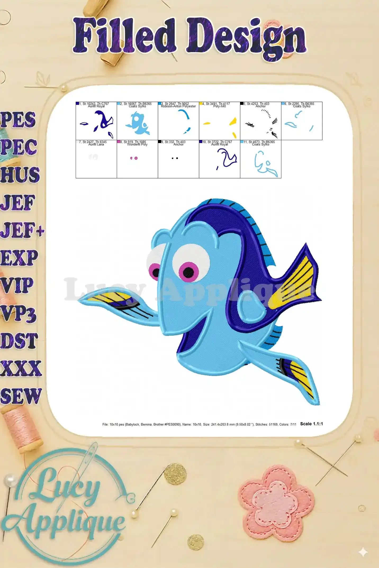 Dory Fill Embroidery Design 02 – Instant Download