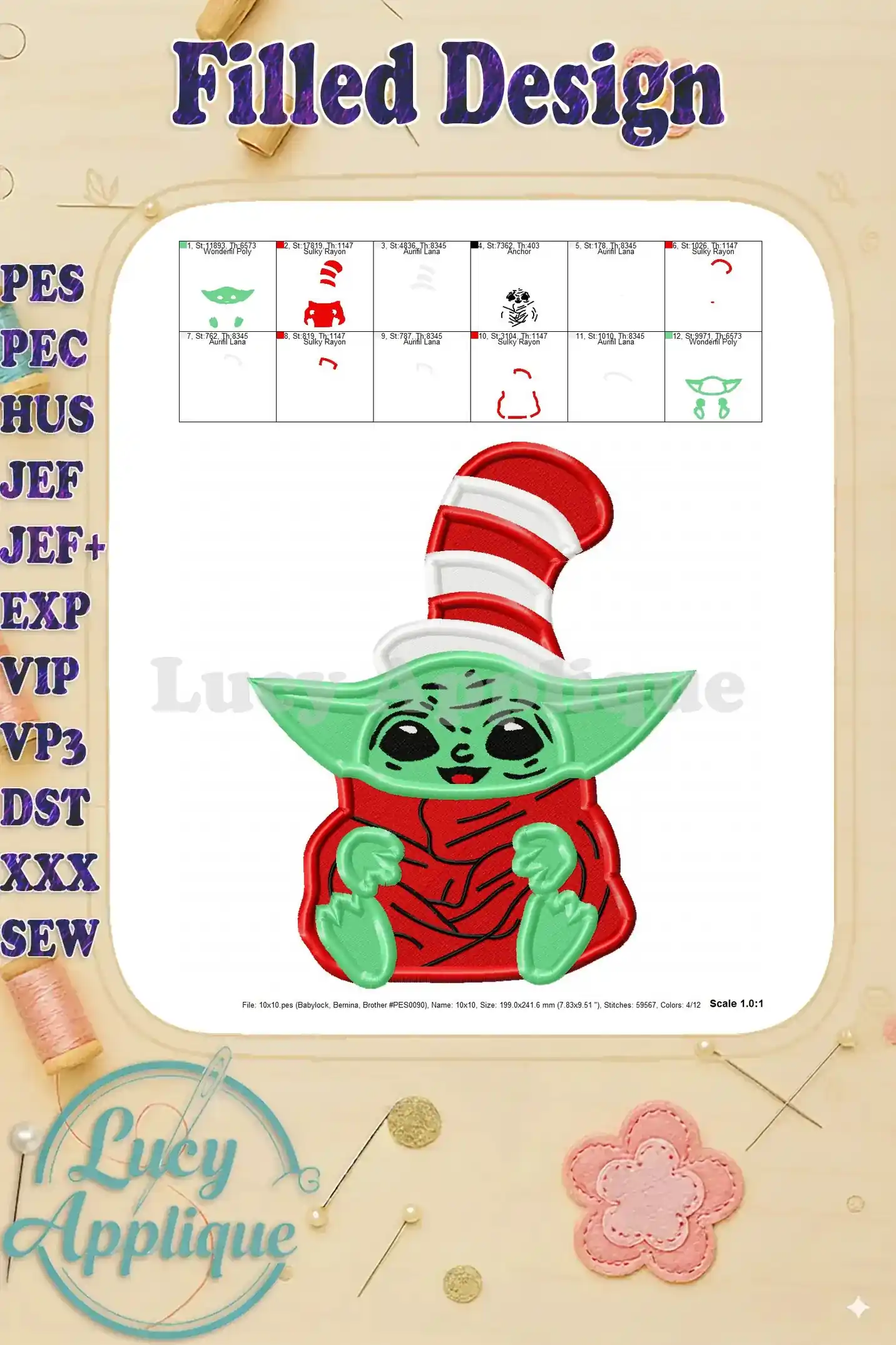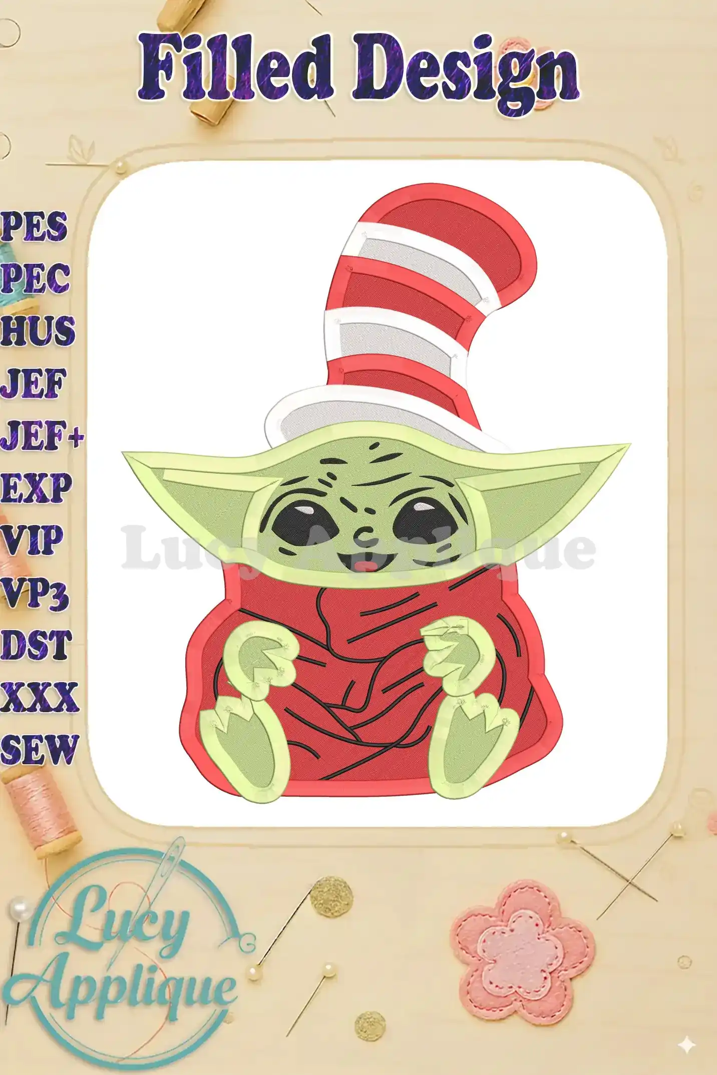 Dr Seuss Baby Yoda Filled Embroidery Design – Instant Download