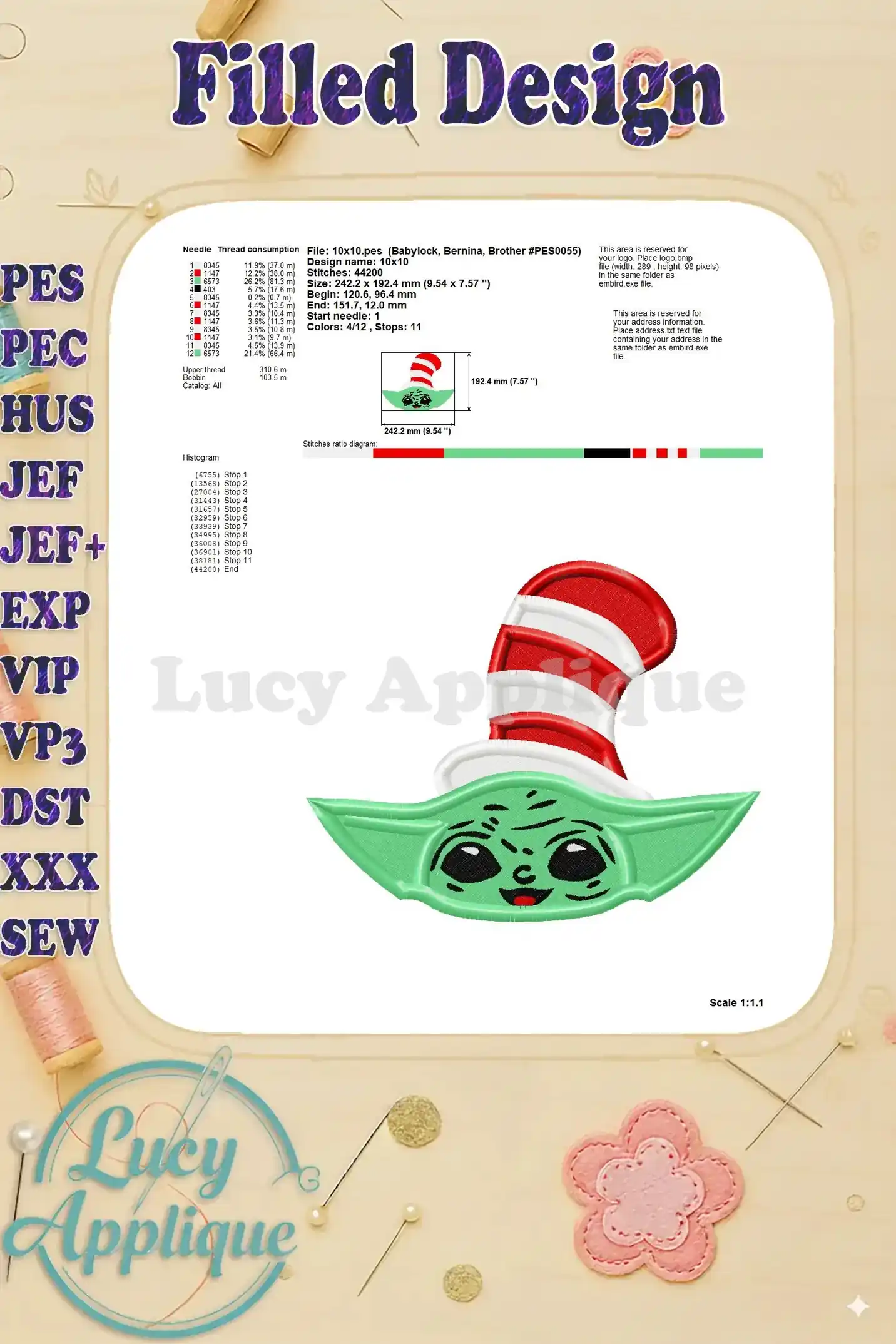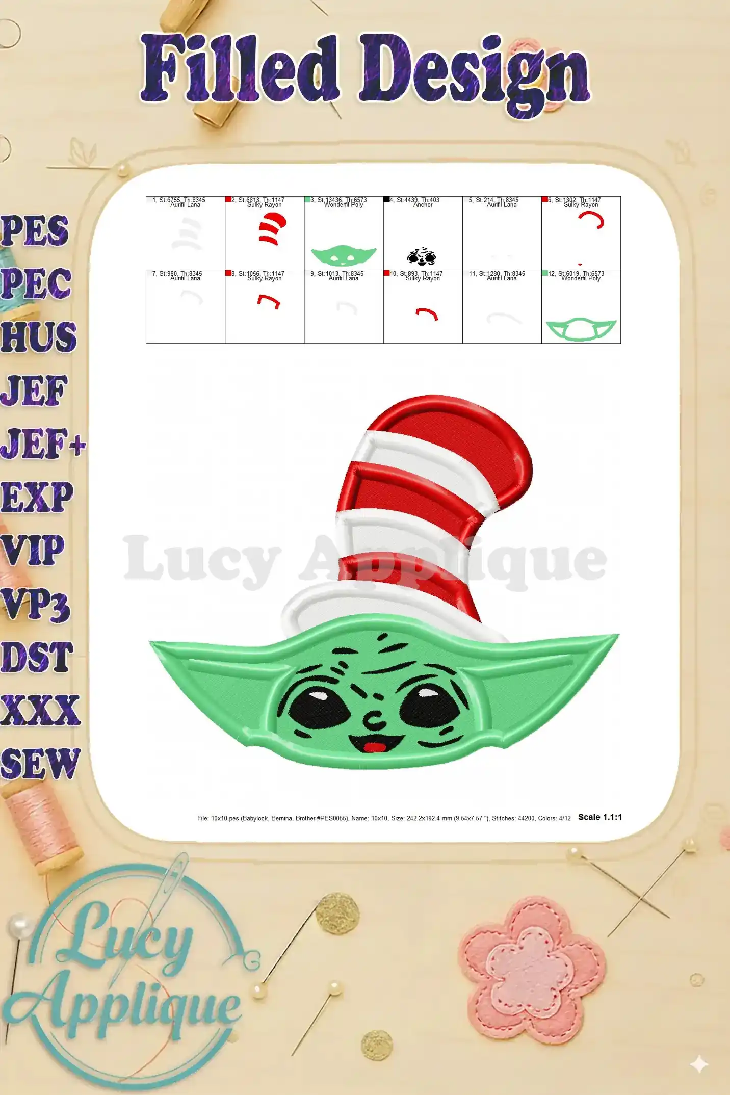 Dr Seuss Baby Yoda Head Filled Embroidery Design – Instant Download