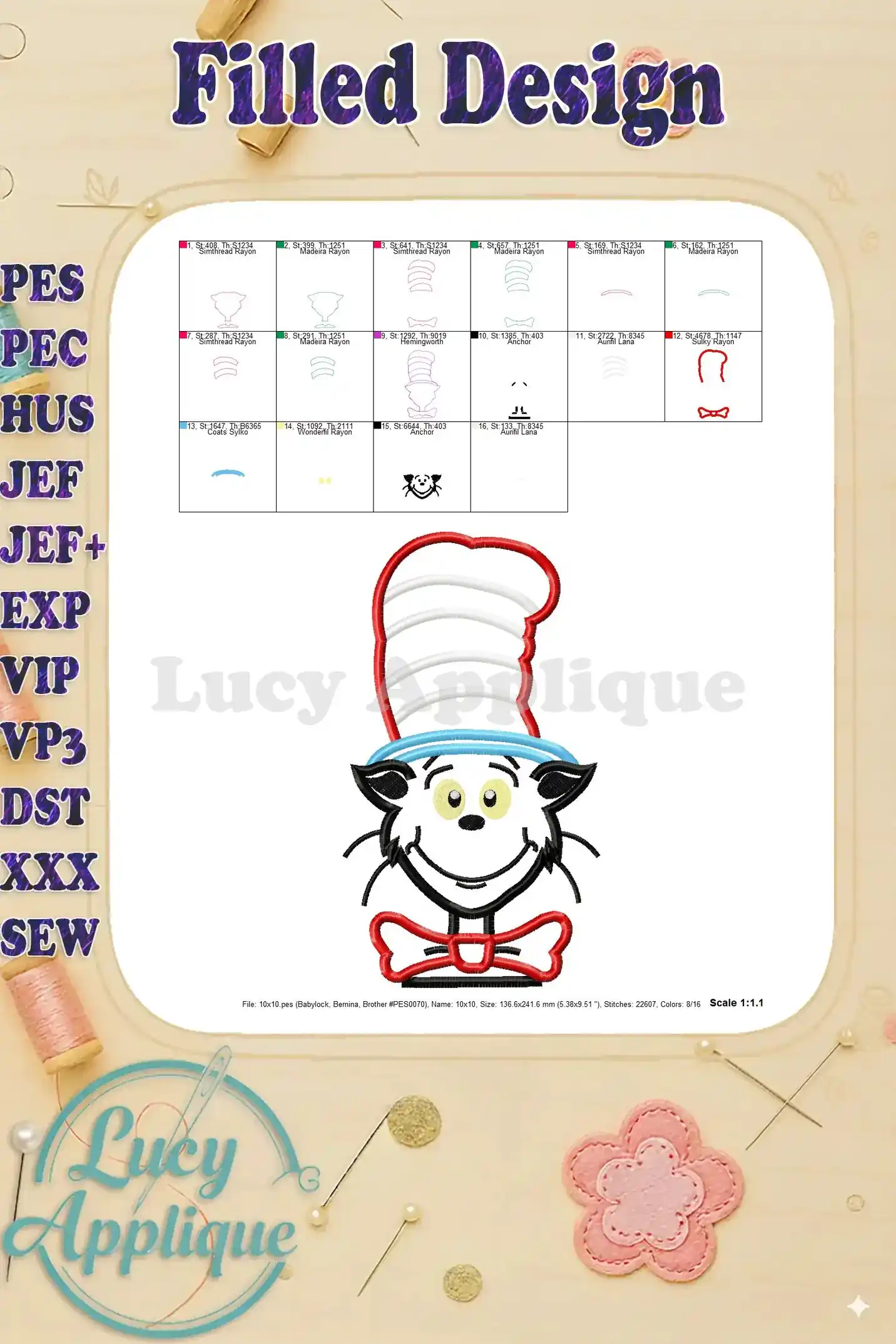 Dr Seuss Cat in The Hat Applique Embroidery Design – Instant Download