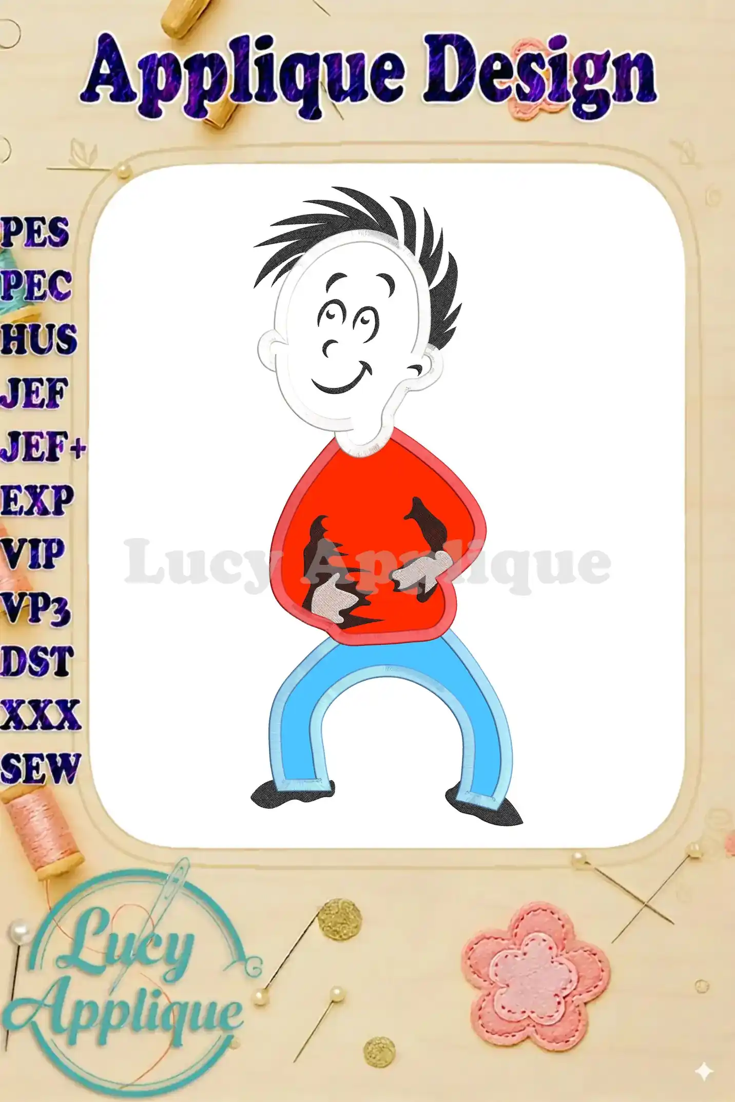 Adorable Dr. Seuss Conrad Walden applique embroidery design! Perfect for kids’ clothes, quilts, or home decor. Easy-to-follow instructions included. Add whimsical charm to your projects!