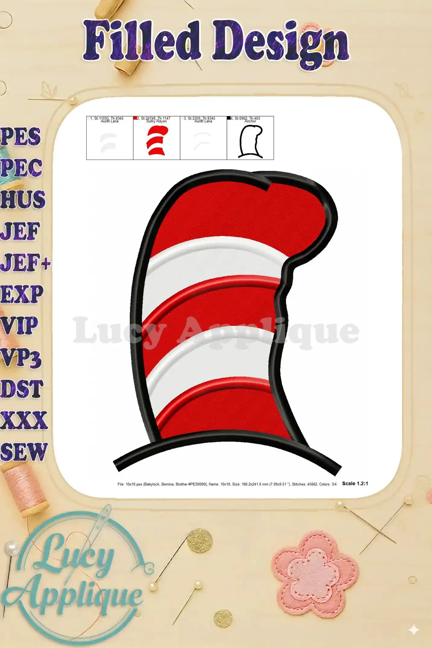 Dr Seuss Hat Filled Embroidery Design – Instant Download
