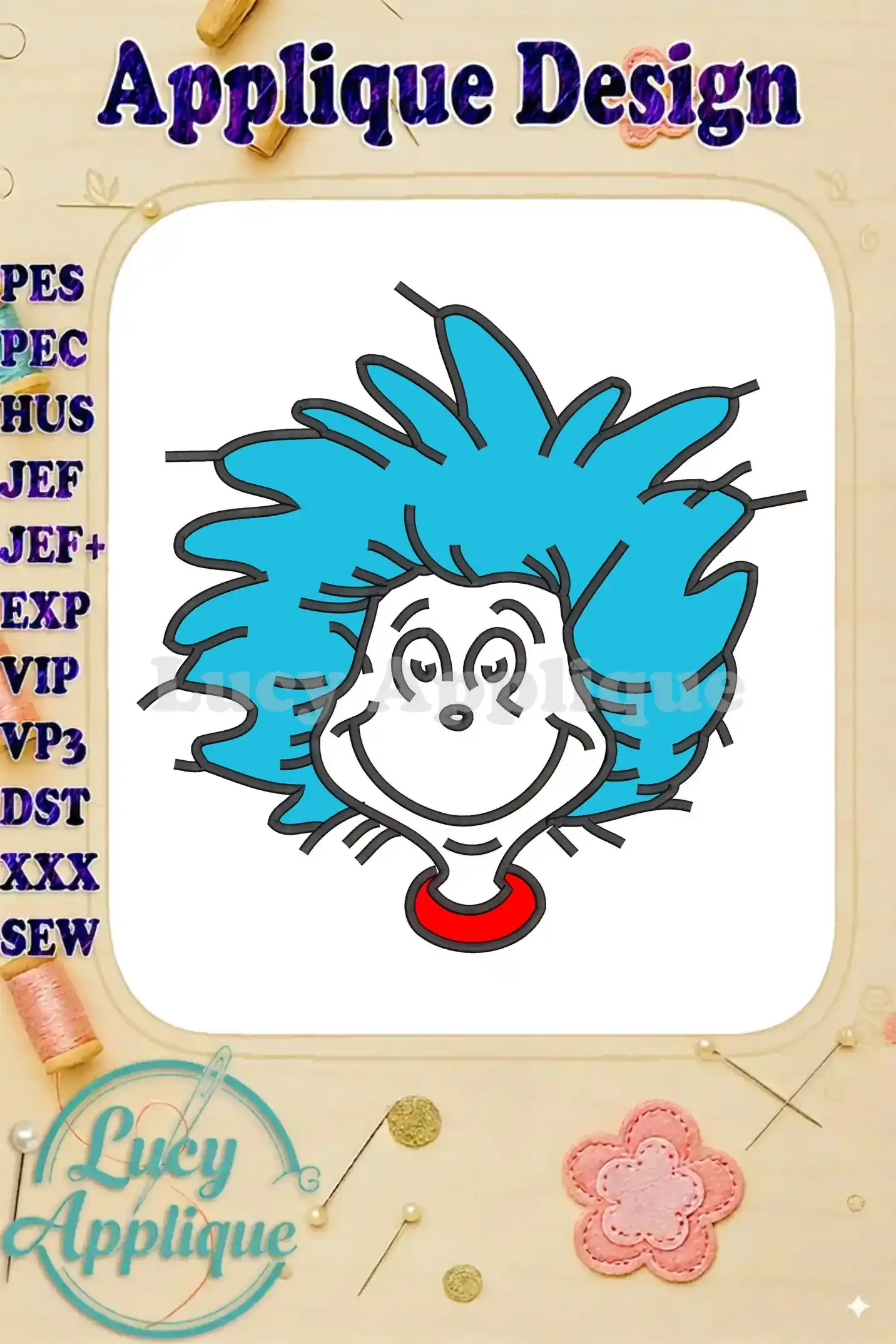 Dr Seuss Thing 1 Thing 2 blue spiky hair applique embroidery designs