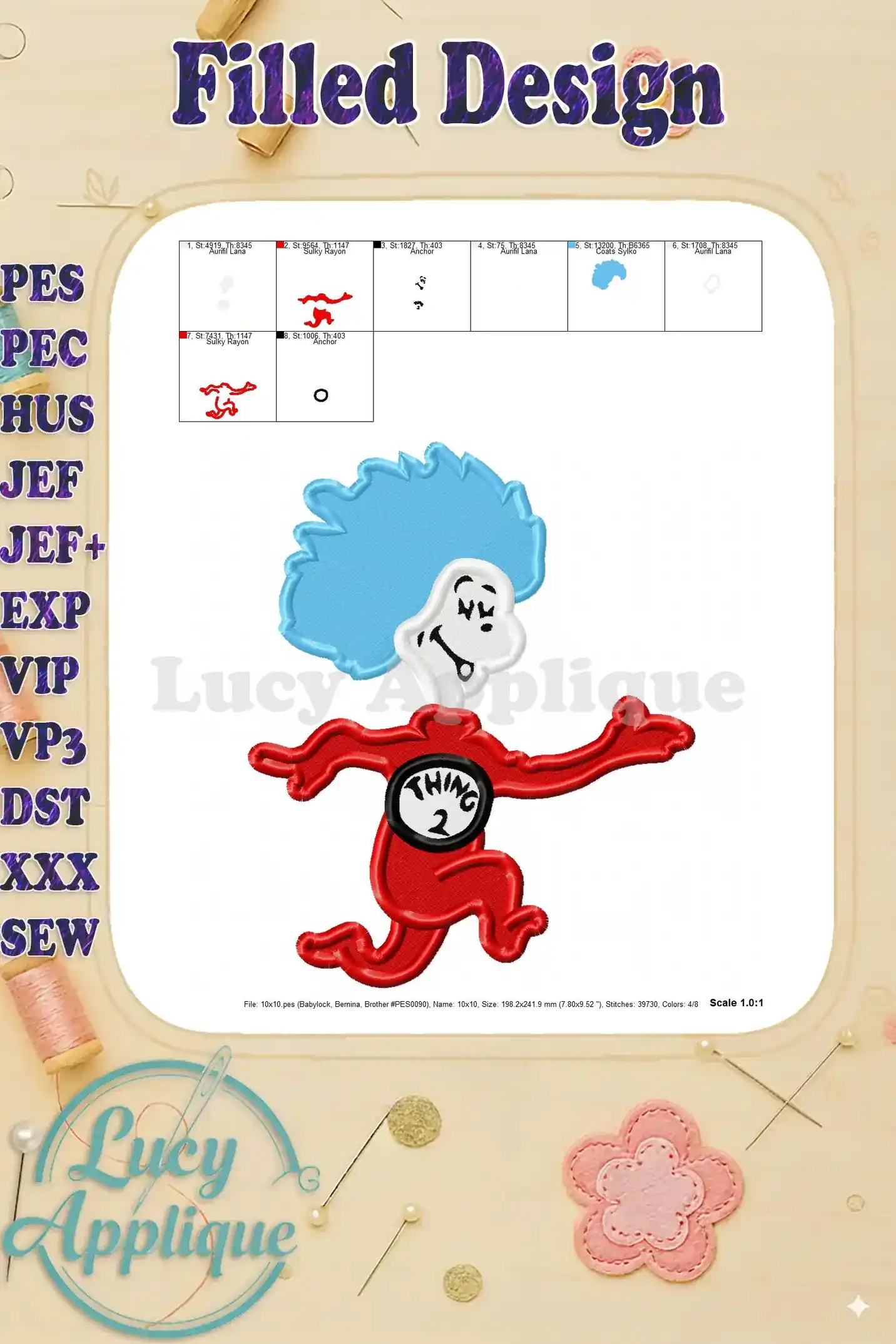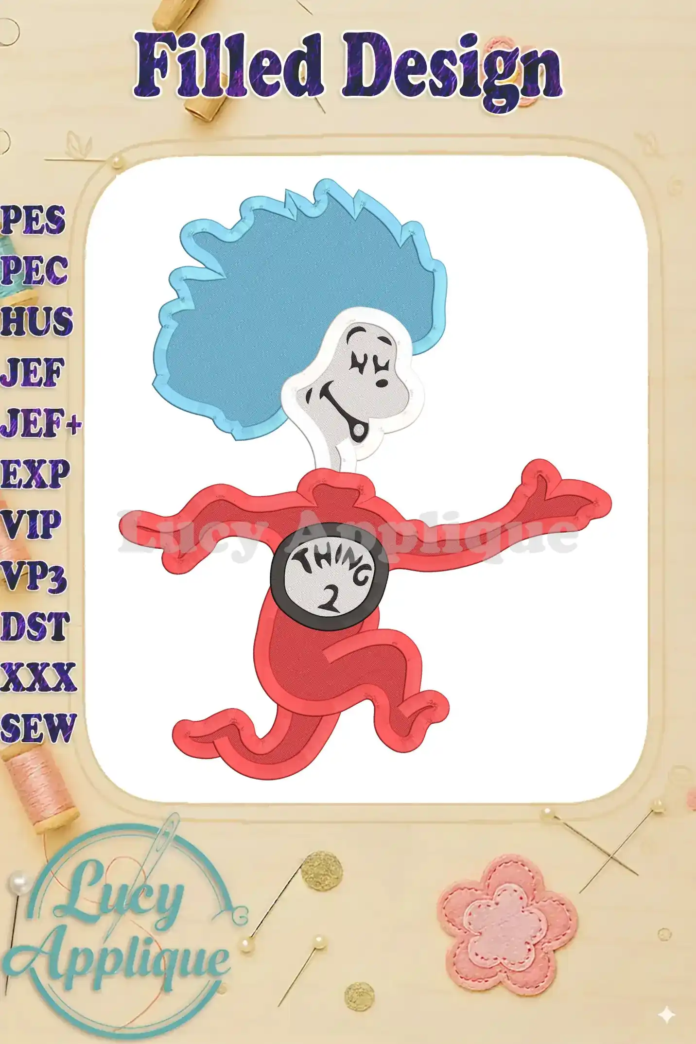 Dr Seuss Thing Two Filled Embroidery Design – Instant Download
