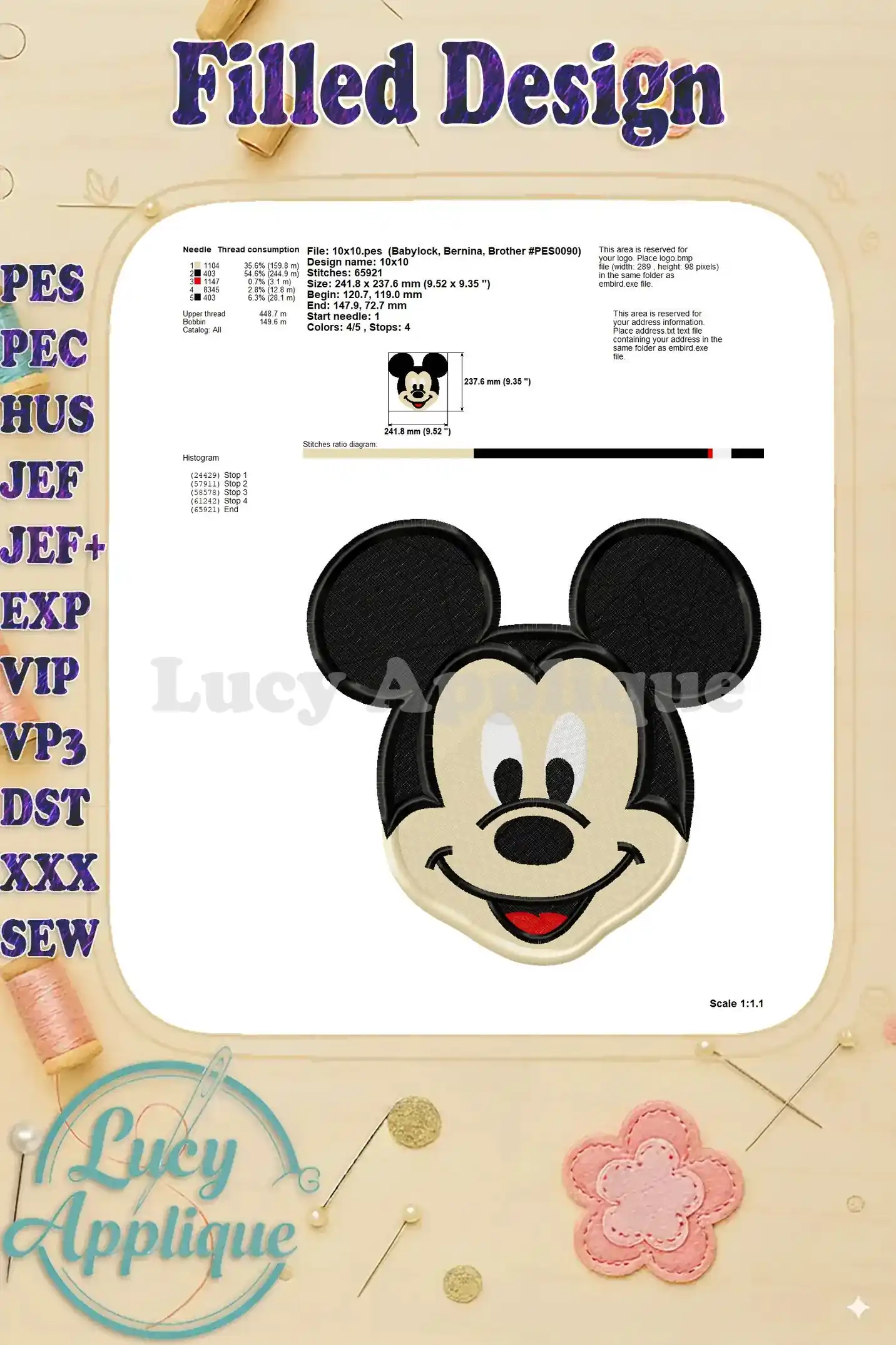 Ears Mickey Mouse Head Fill Machine Embroidery Design – Instant Download