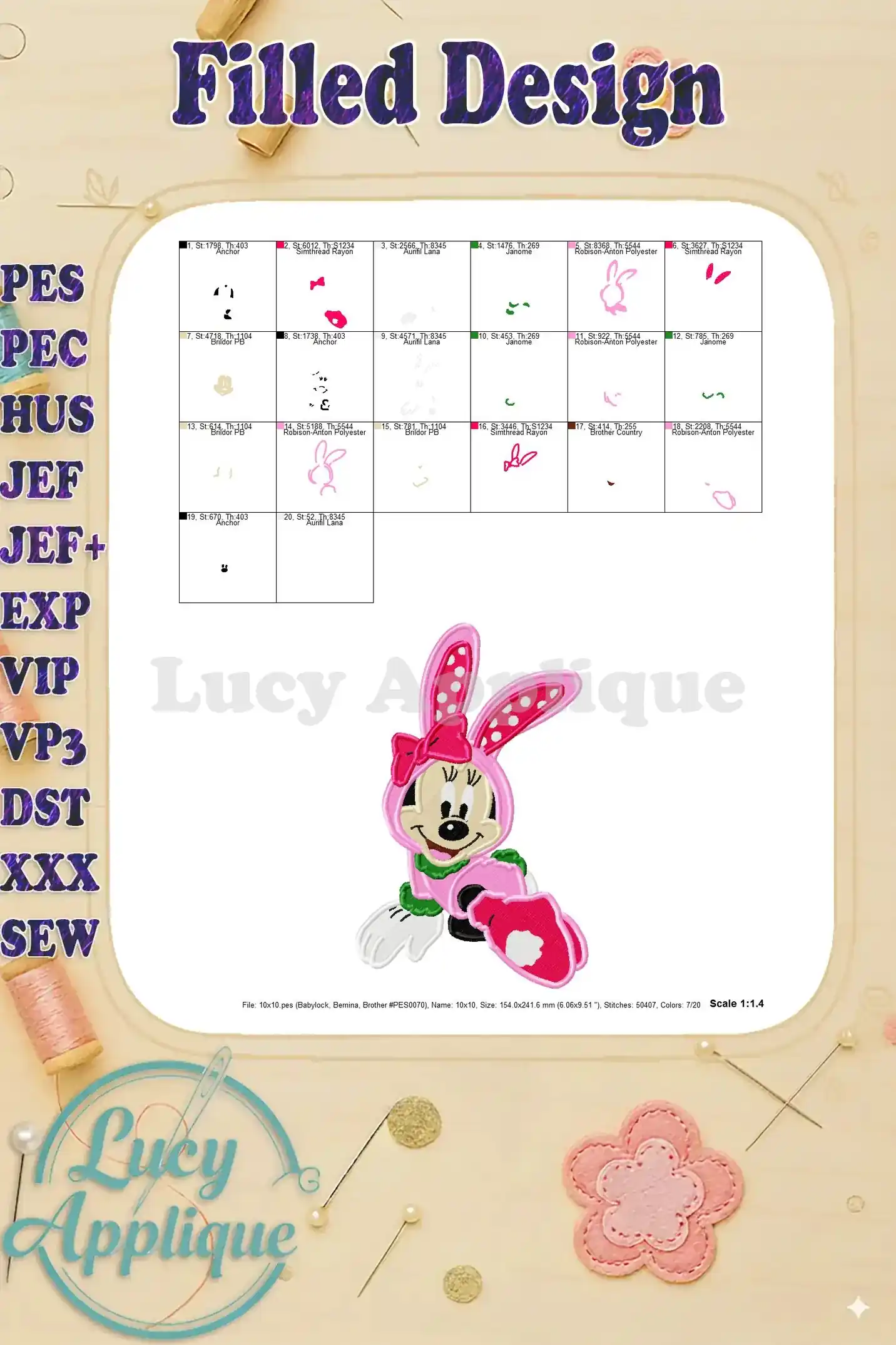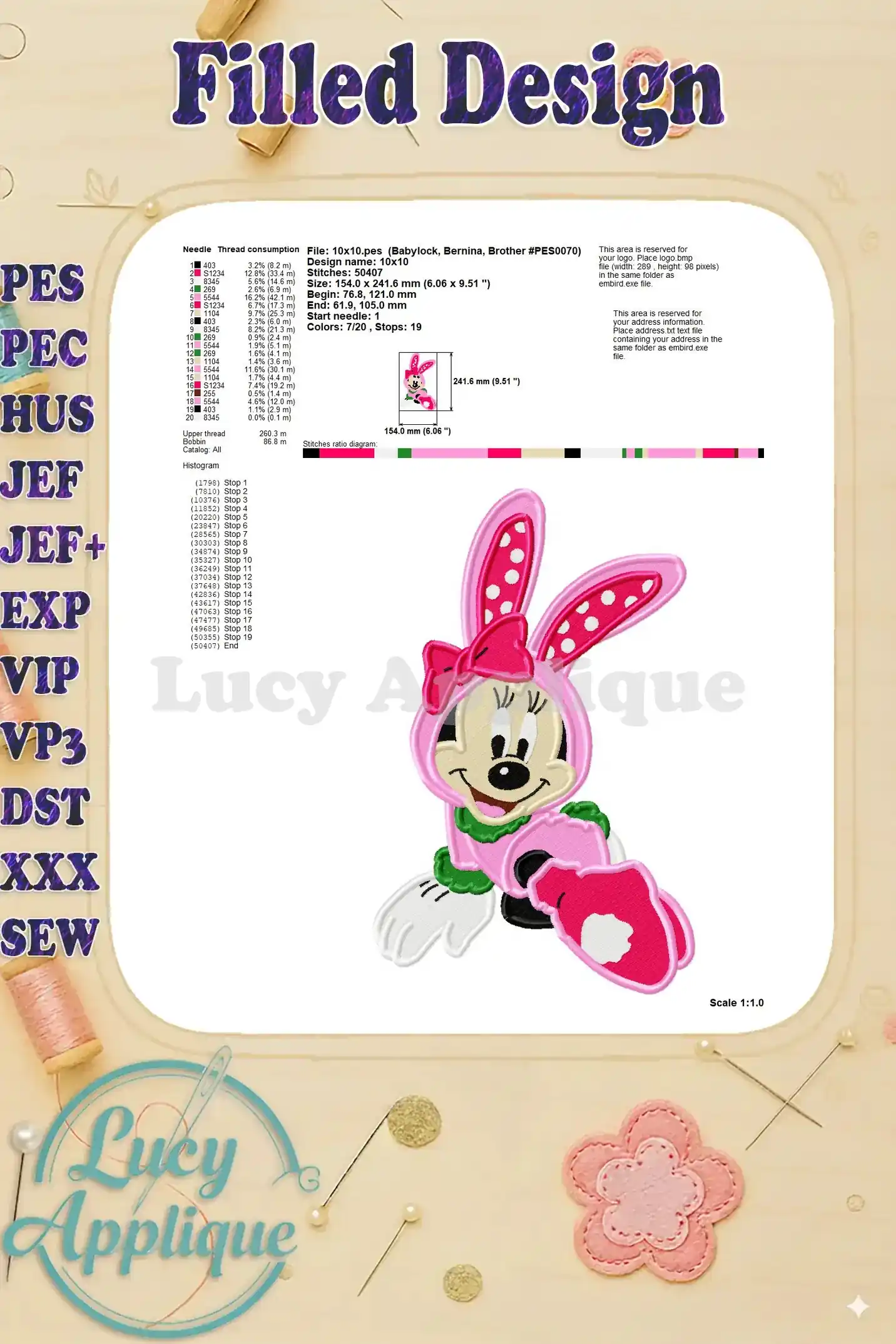 Easter Minnie Bunny Fill Embroidery Design – Instant Download