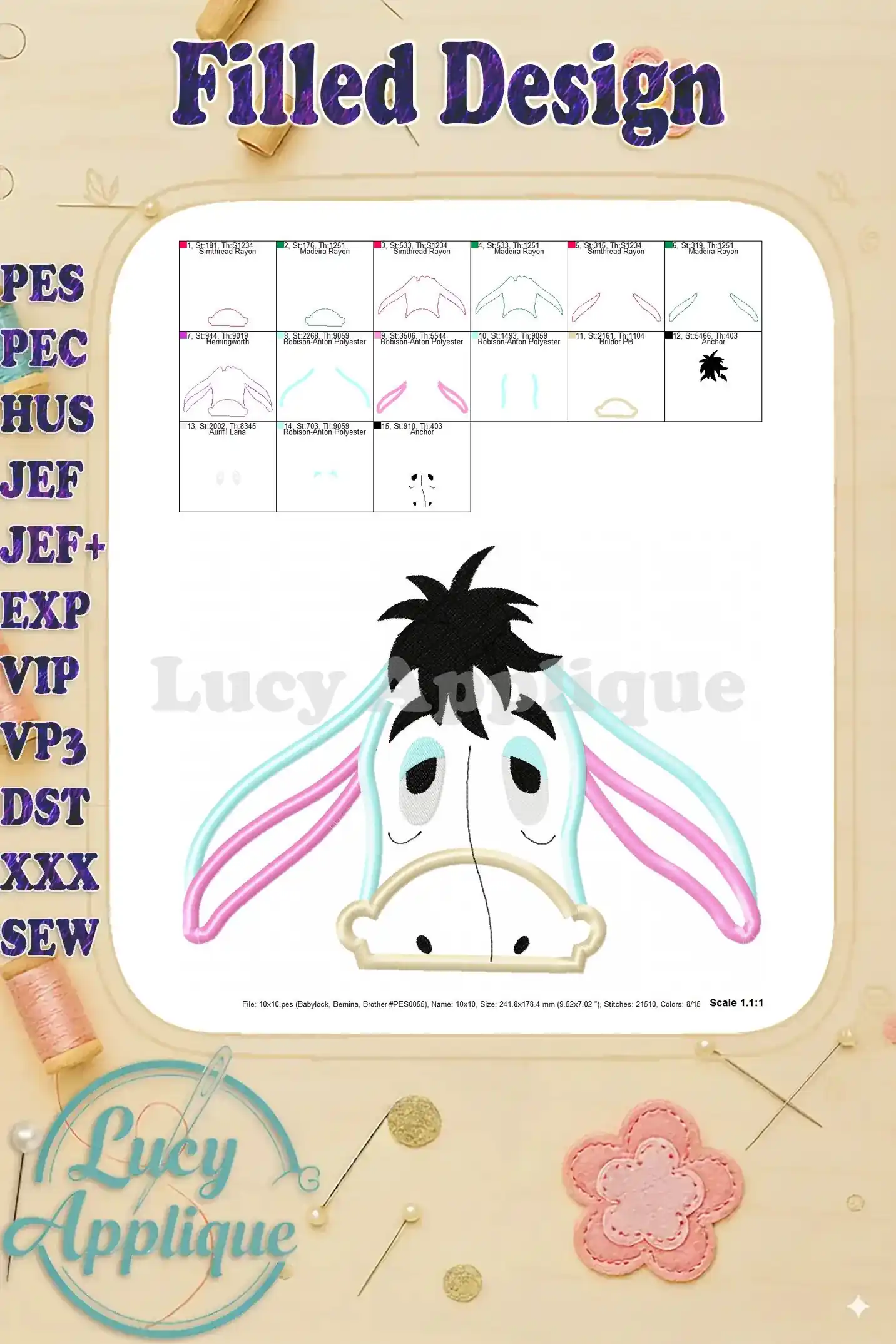 Eeyore Applique Embroidery Design – Instant Download