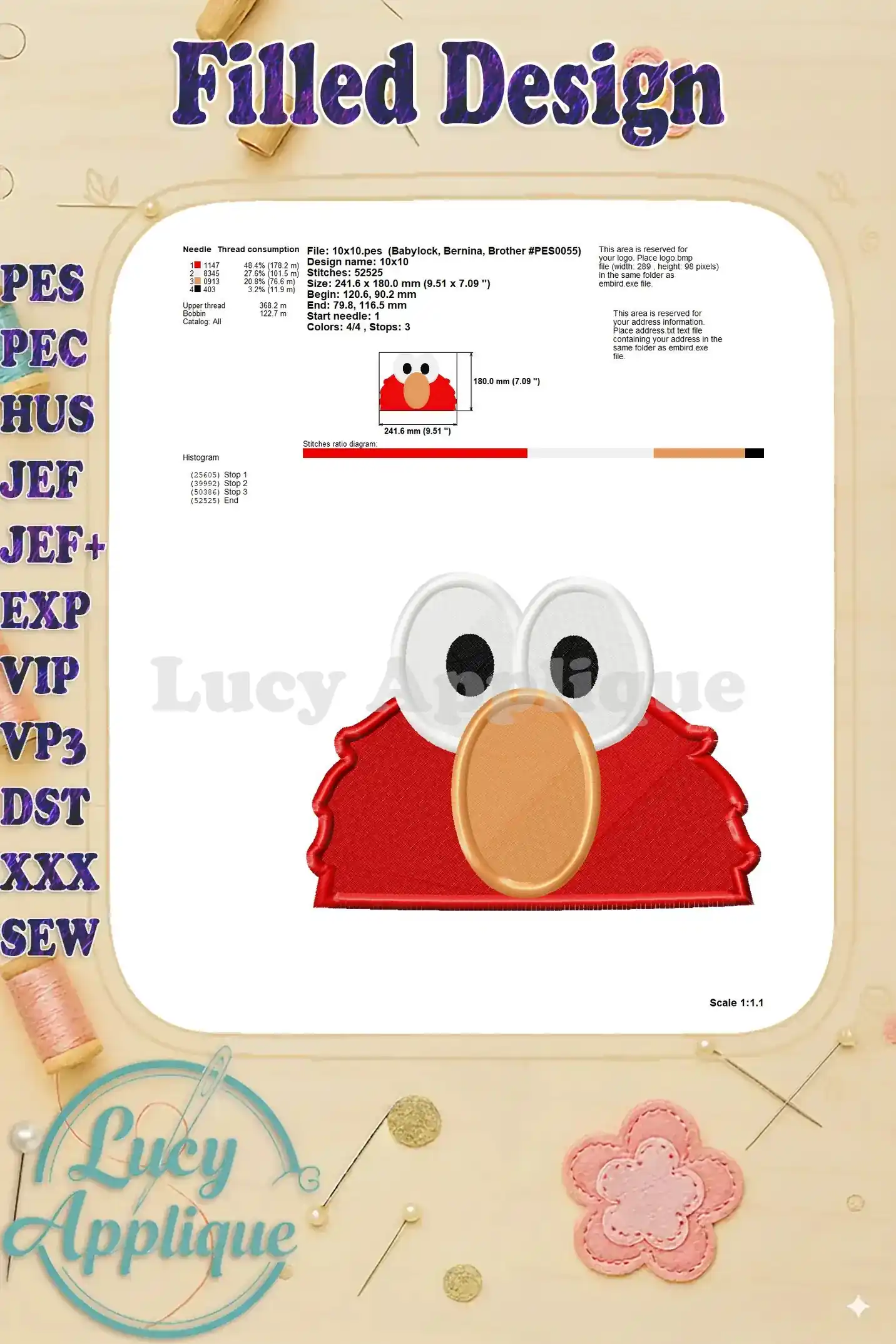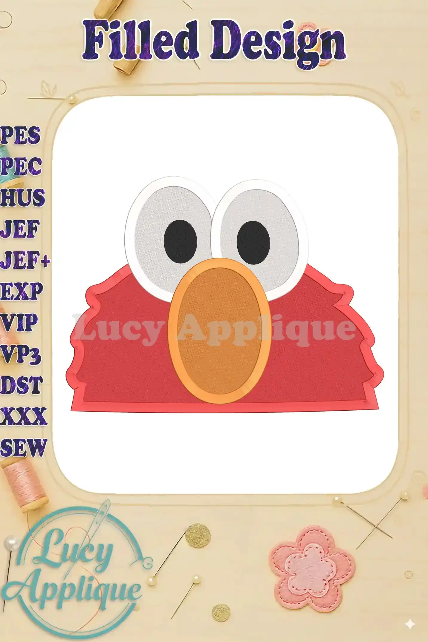 Elmo Sesame Street Head Fill Machine 02 Embroidery Design – Instant Download
