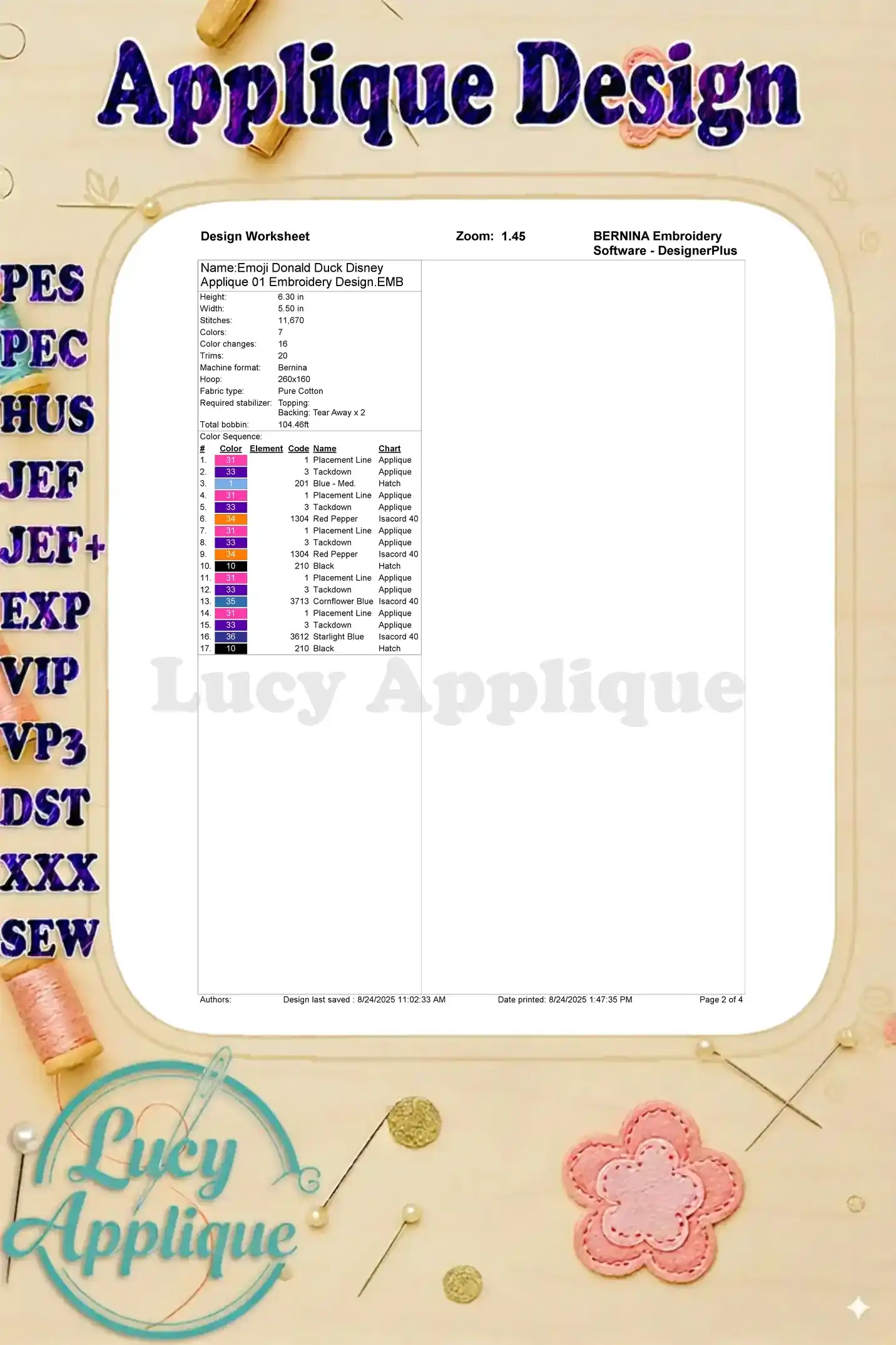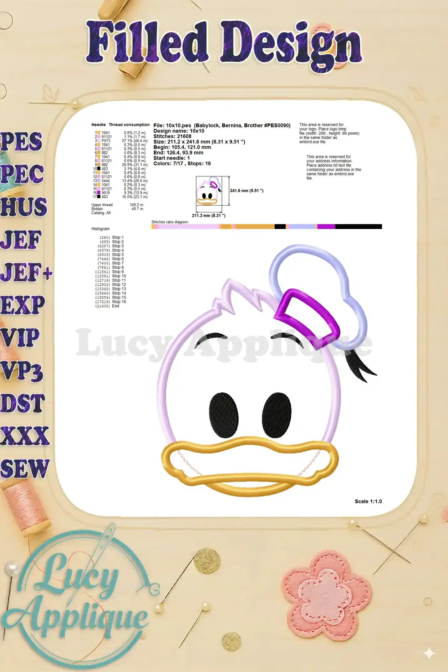 Emoji Donald Duck Disney Applique 01 Embroidery Design – Instant Download