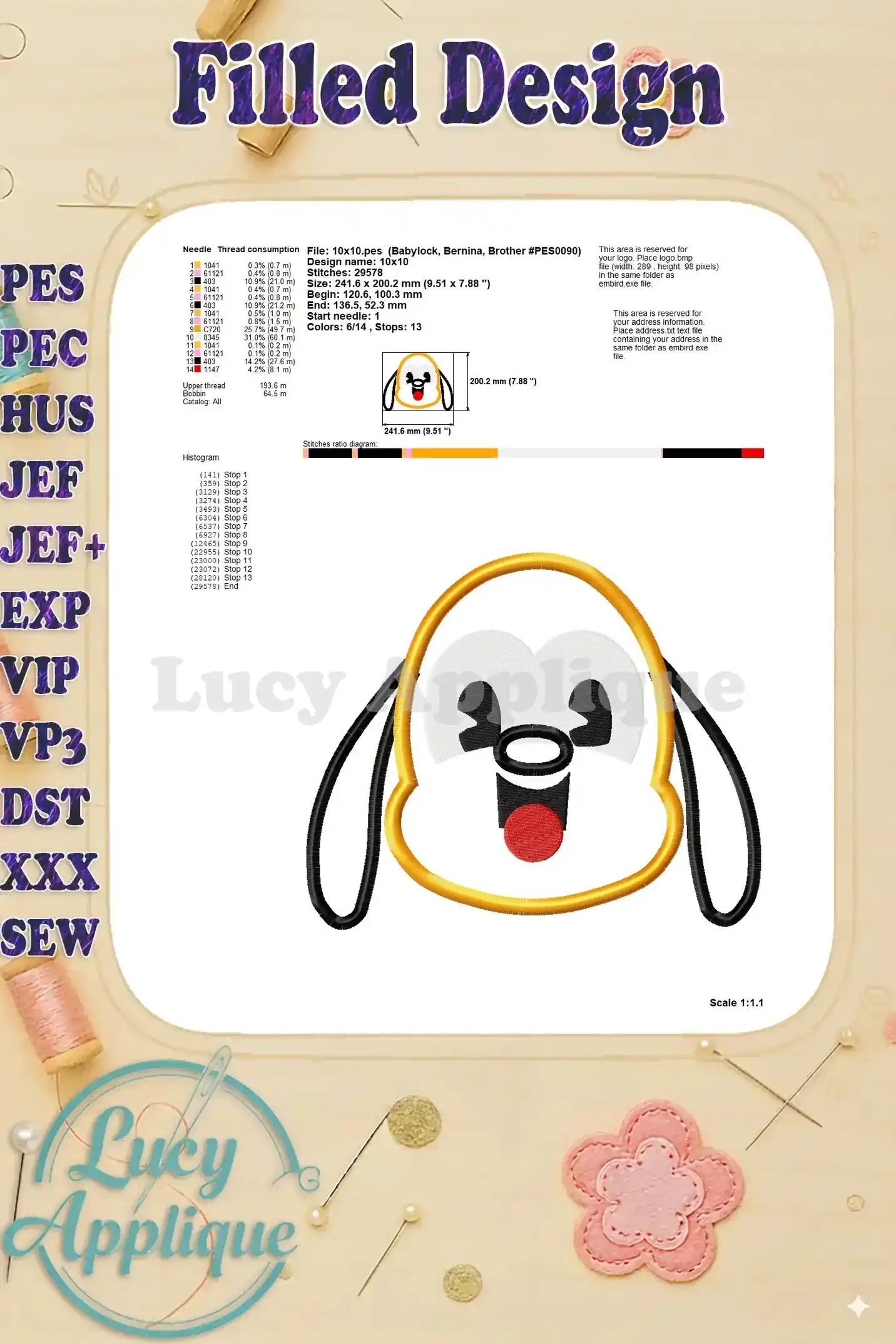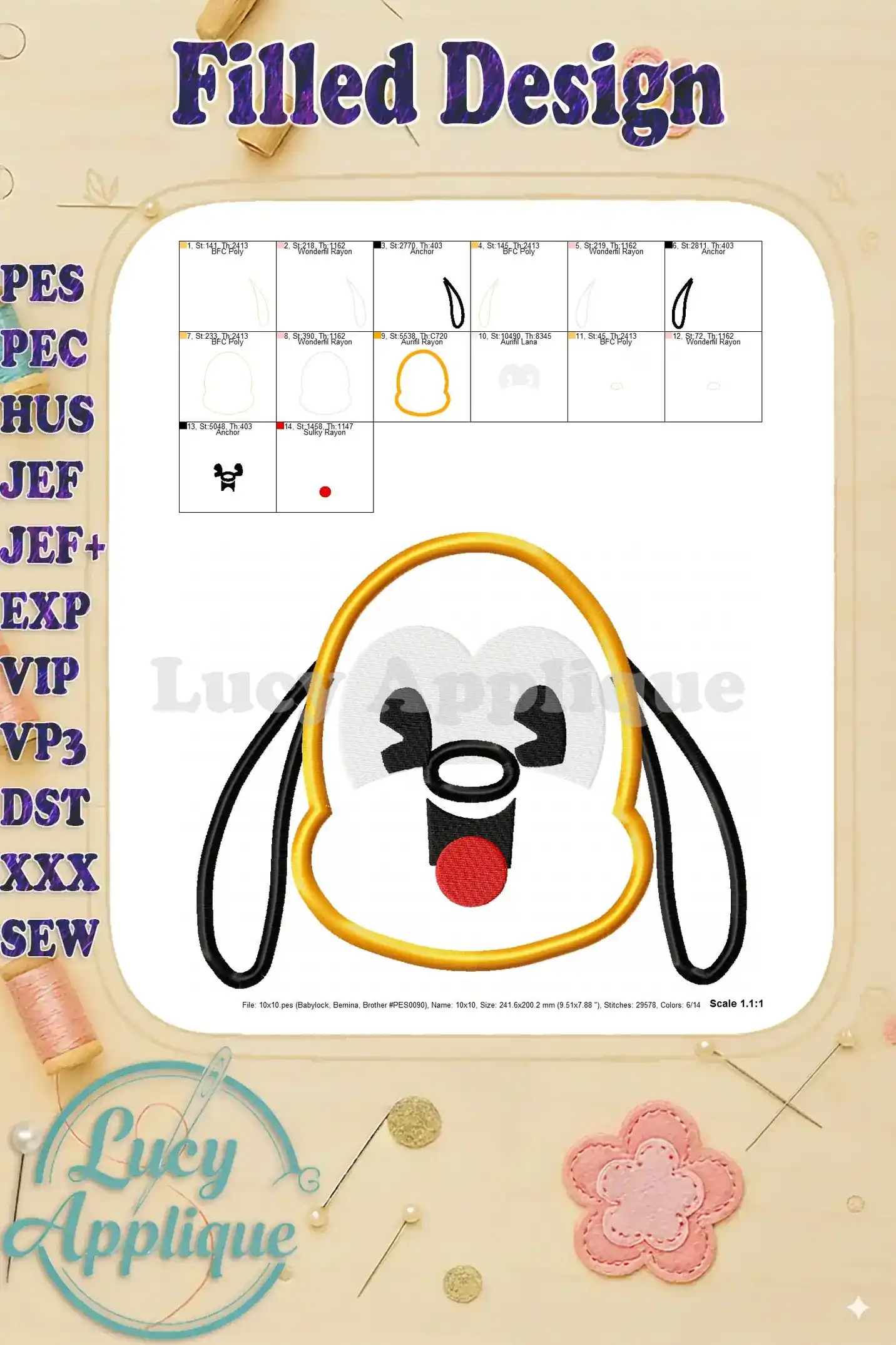 Emoji Happy Pluto Disney Applique 02 Embroidery Design – Instant Download
