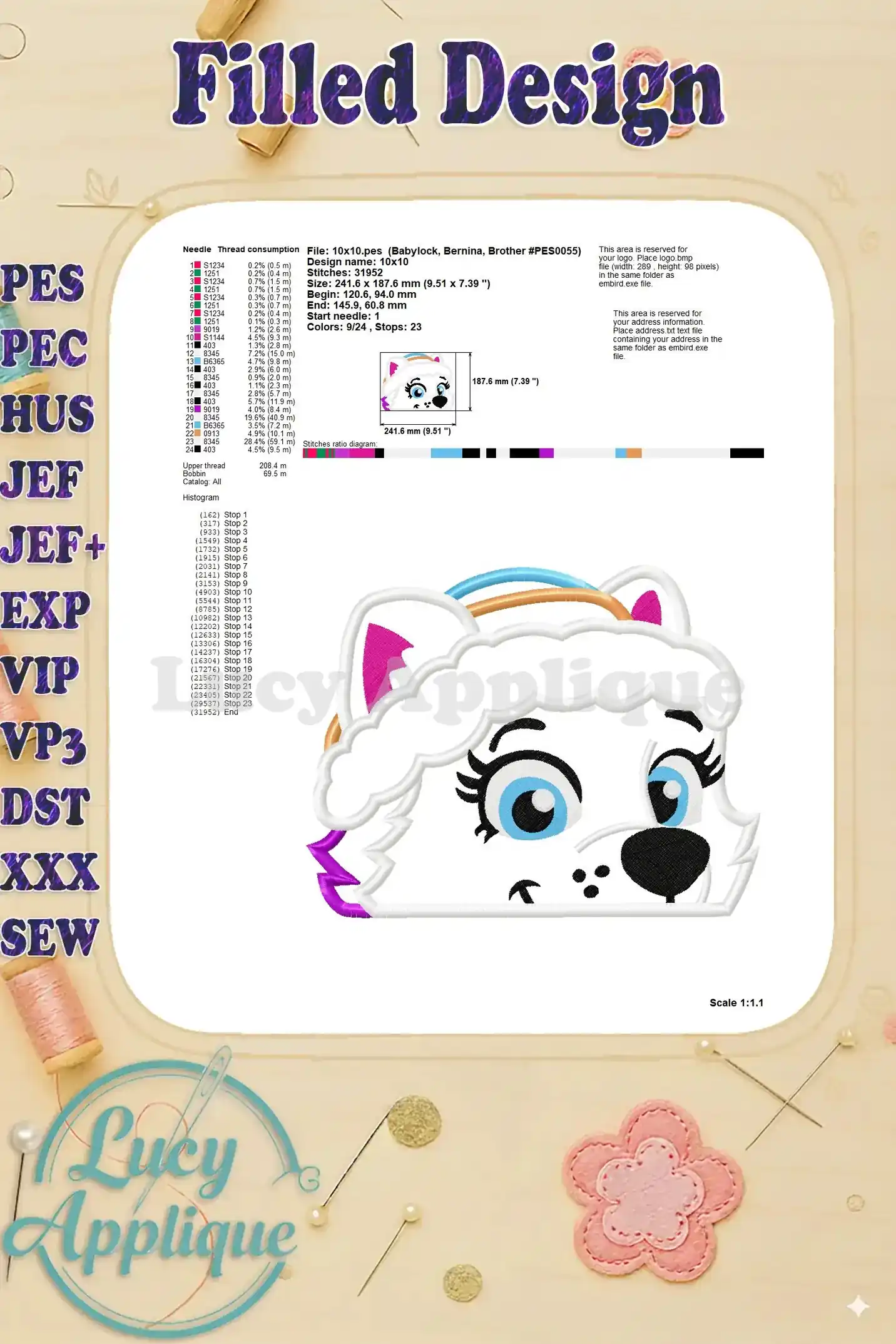 If you have any questions about using the design, please contact me at this link https://lucyapplique.com/contact-us, I’ll be happy to help.