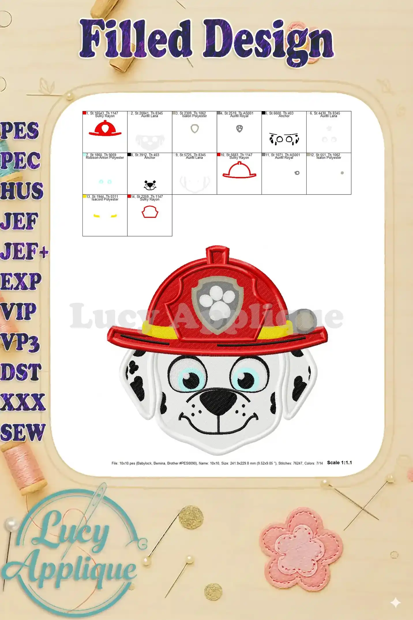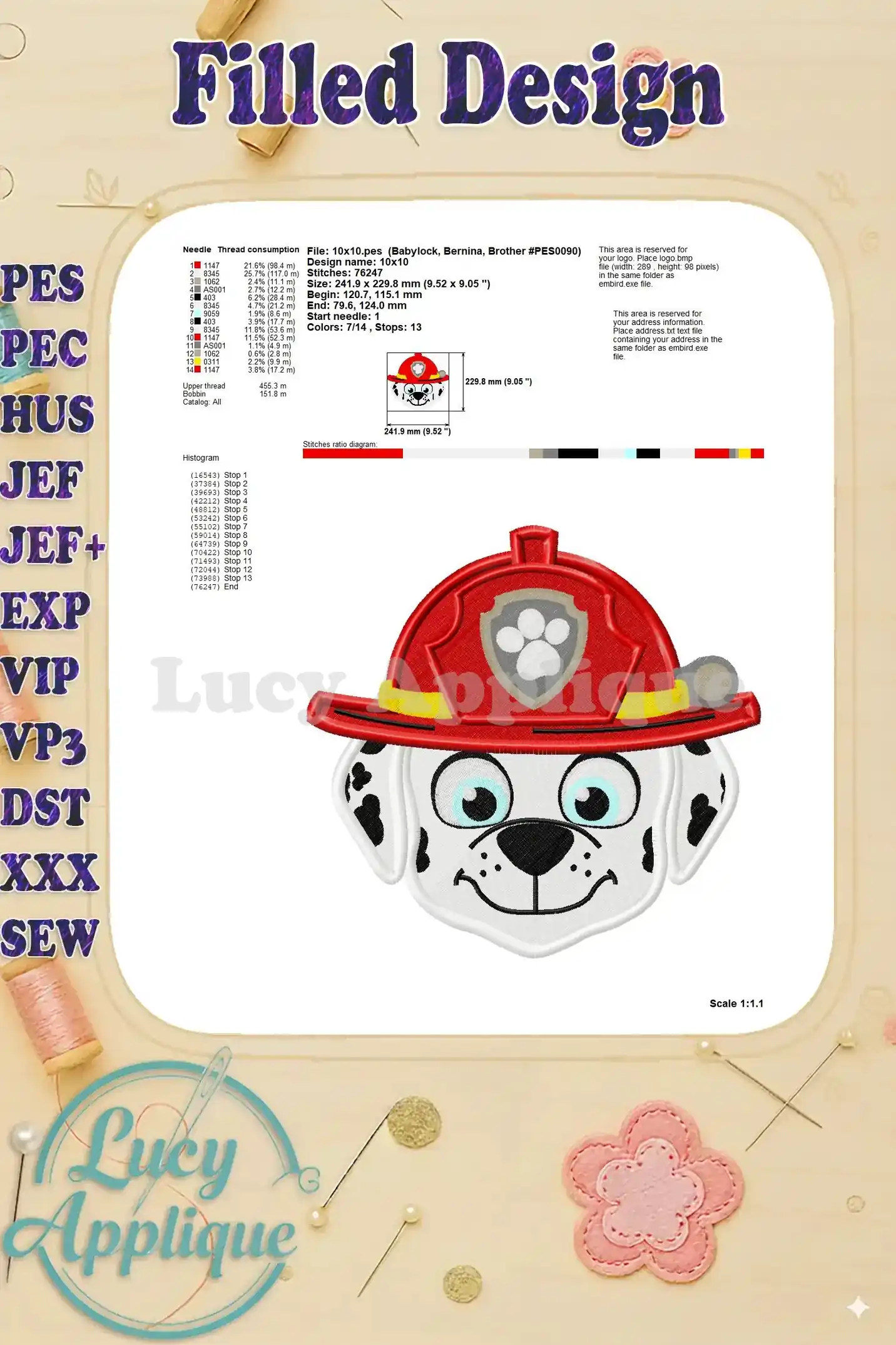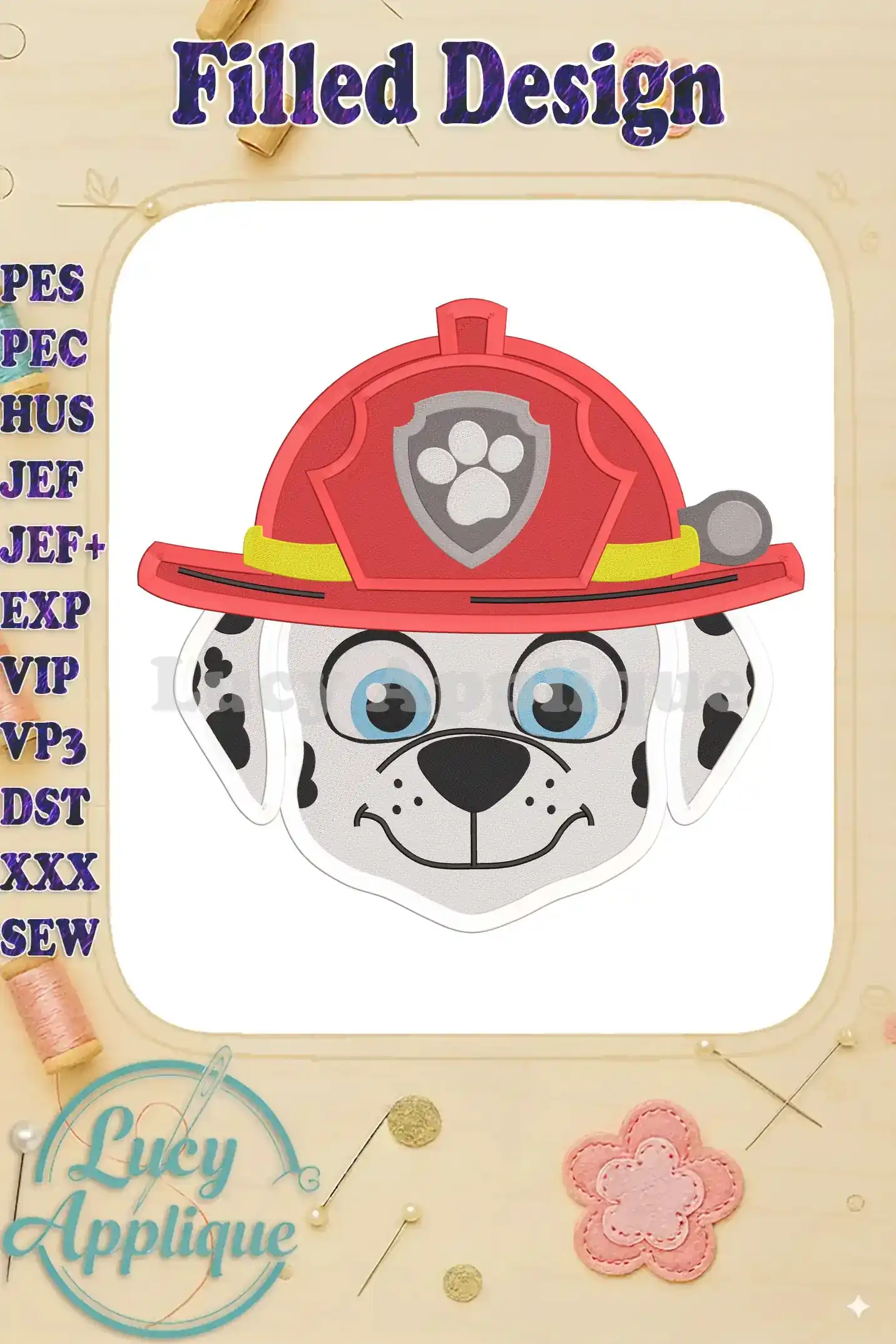 Face Marshall Paw Patrol Fill Machine Embroidery Design – Instant Download