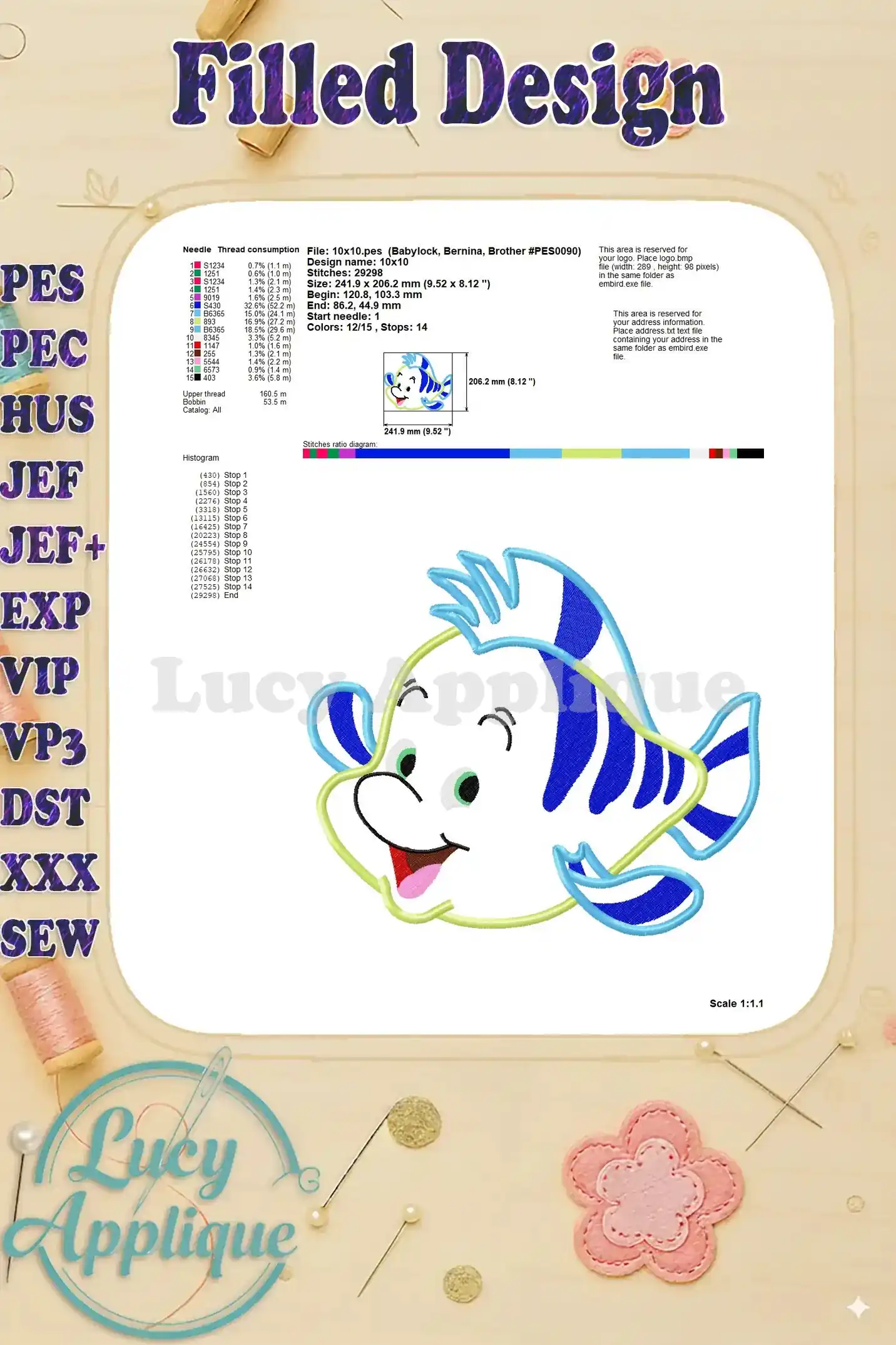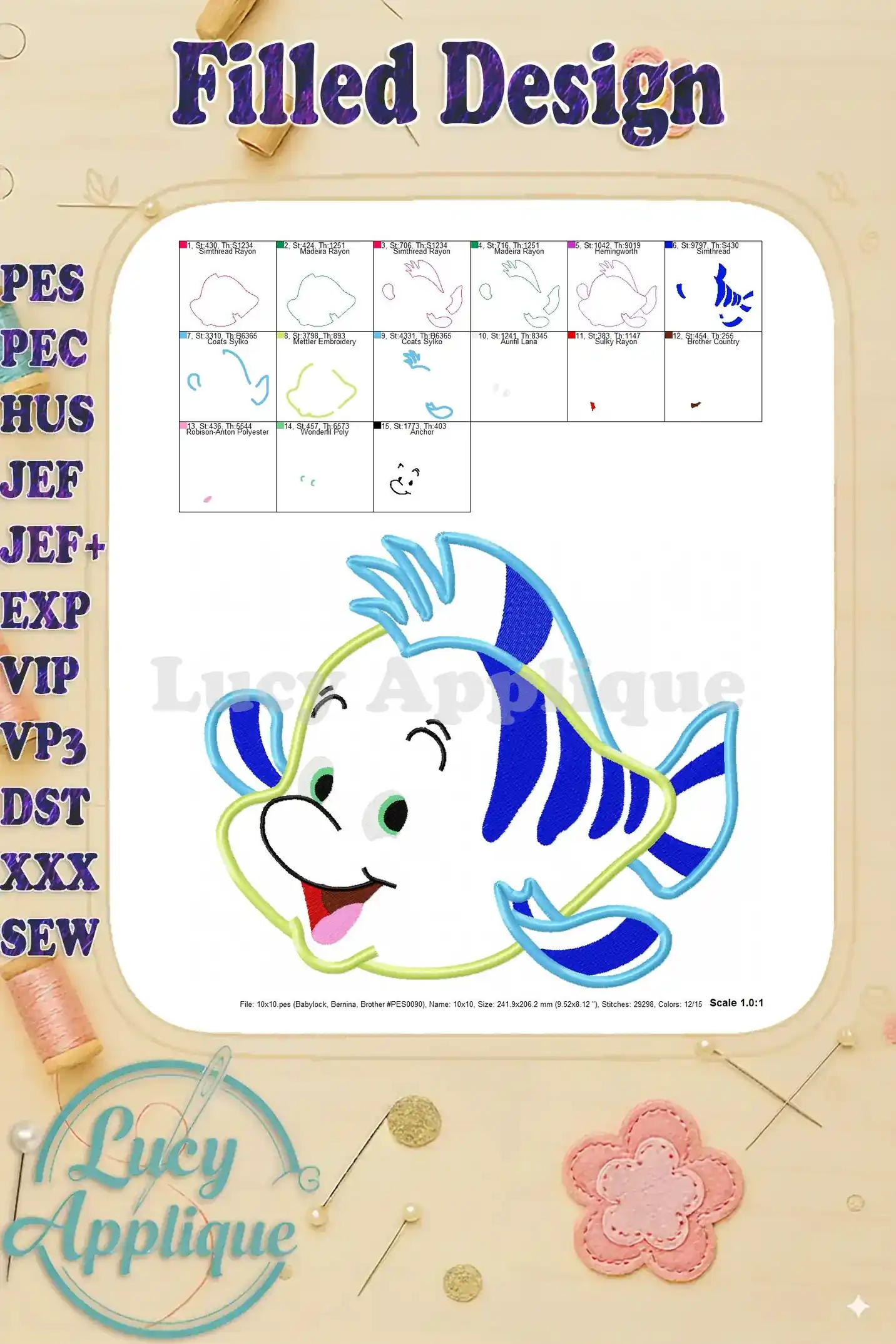 Flounder The Little Mermaid Applique Design 02 – Instant Download