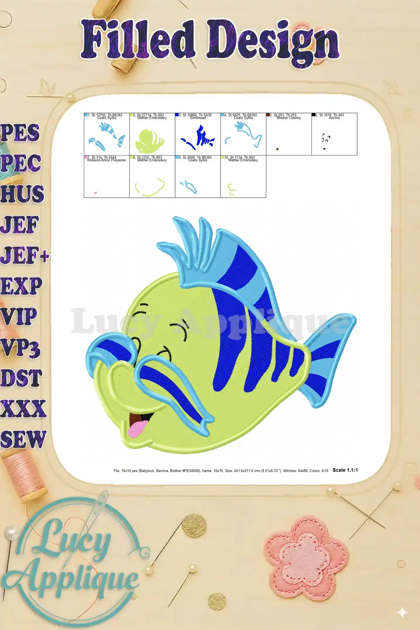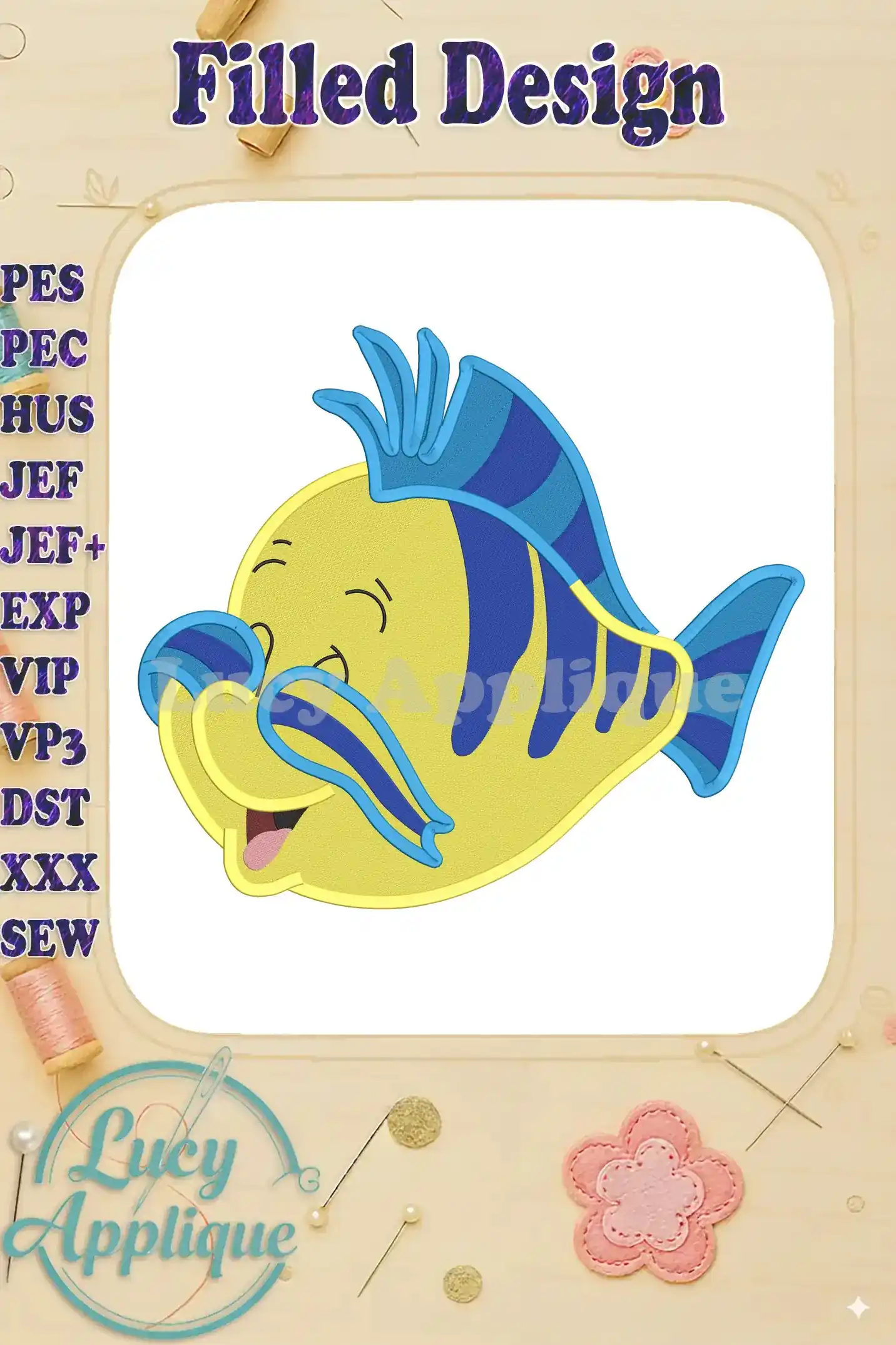 Flounder The Little Mermaid Fill Embroidery Design 03 – Instant Download