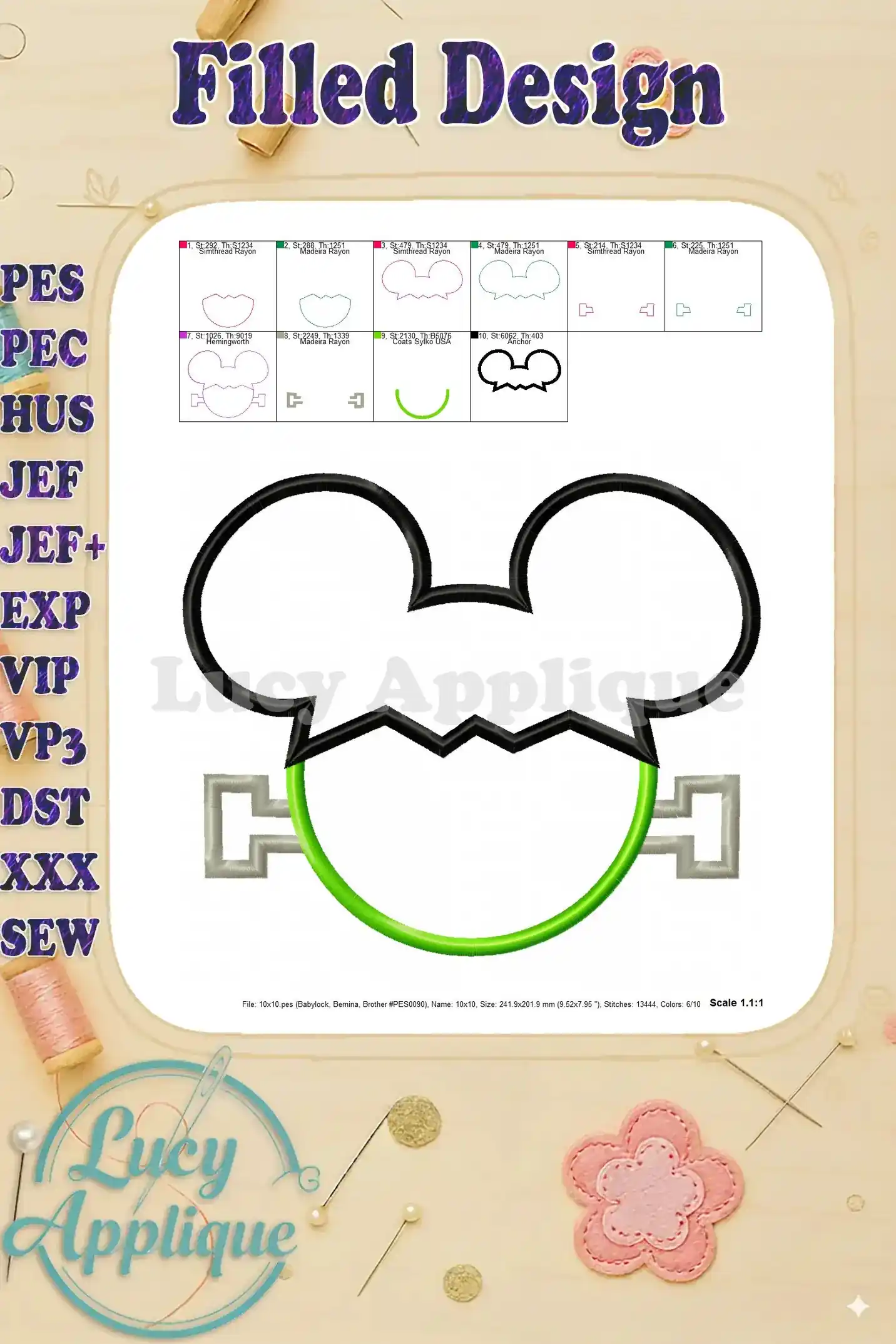 Frankenstein Mickey Mouse Applique Embroidery Design – Instant Download
