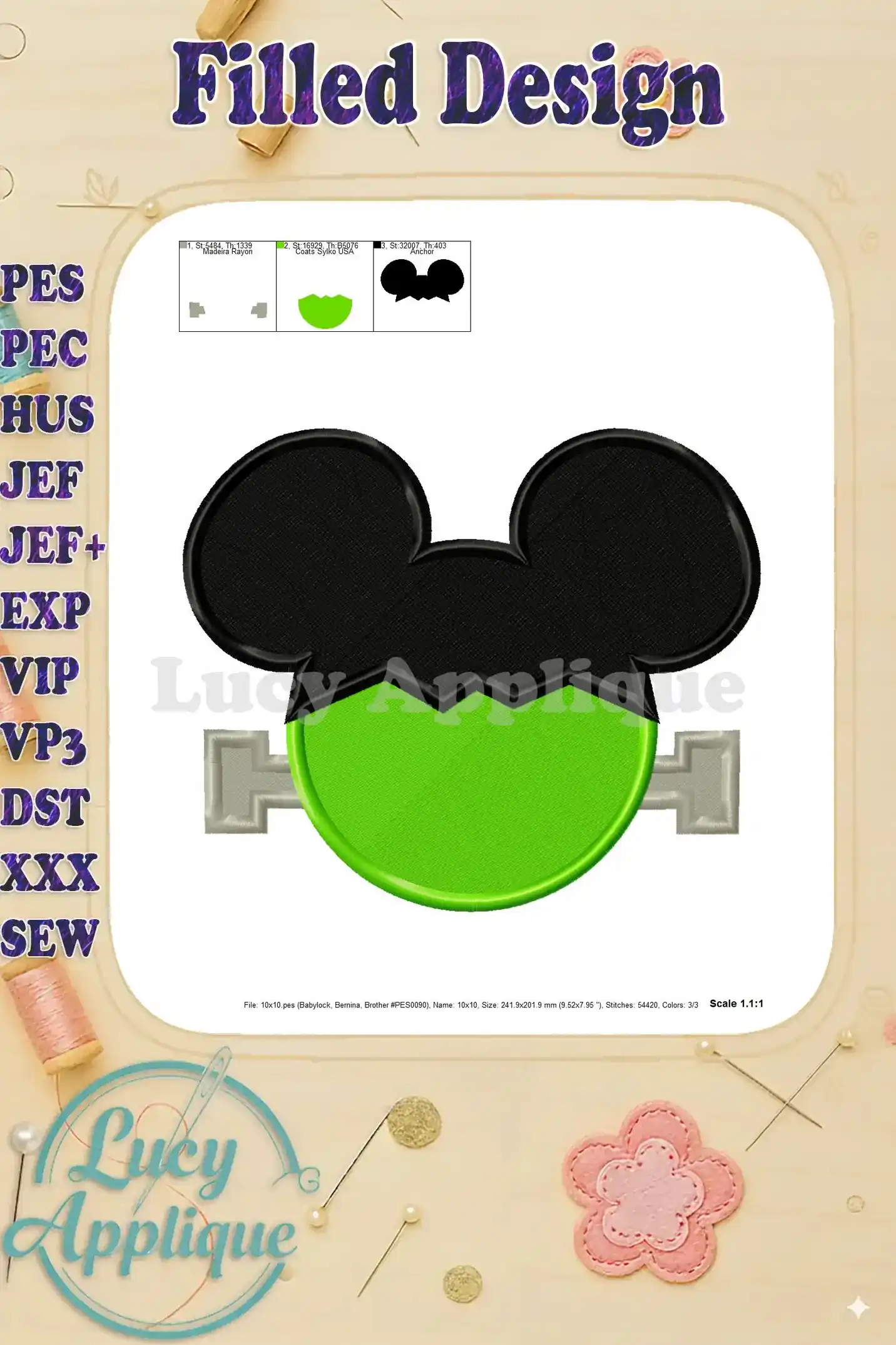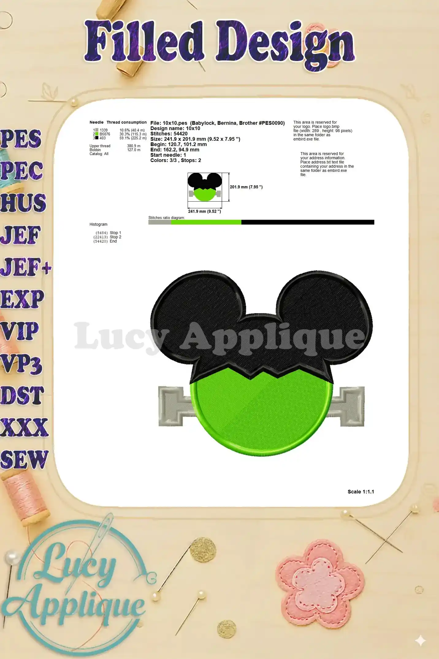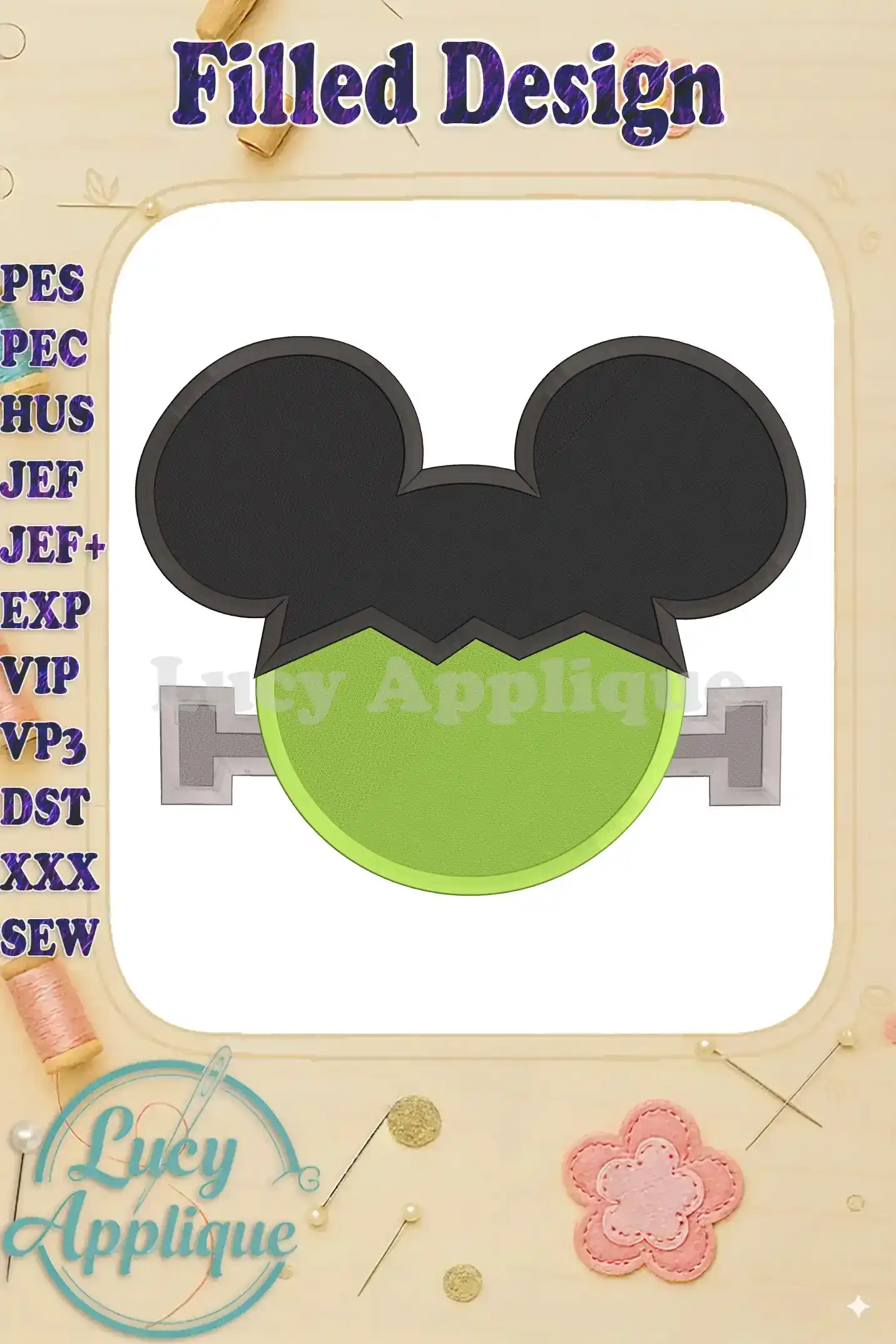 Frankenstein Mickey Mouse Fill Machine Embroidery Design – Instant Download