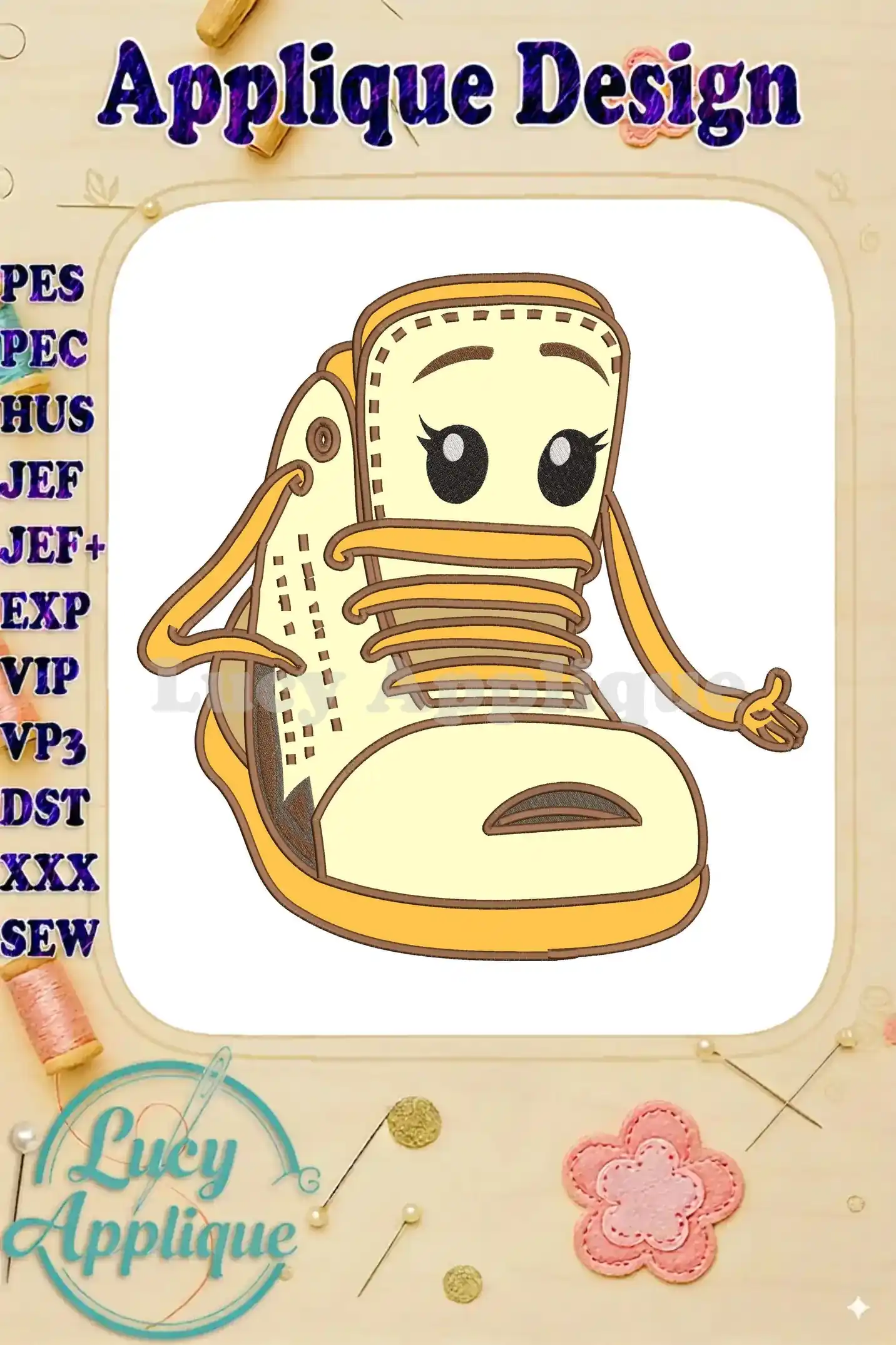 Friendly Sneaks Applique embroidery designs featuring a happy cartoon shoe