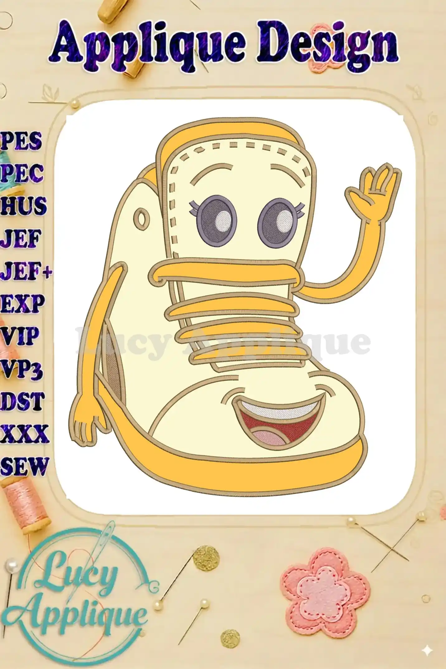 Friendly Waving Sneaks Character Applique Embroidery Designs for Kids
