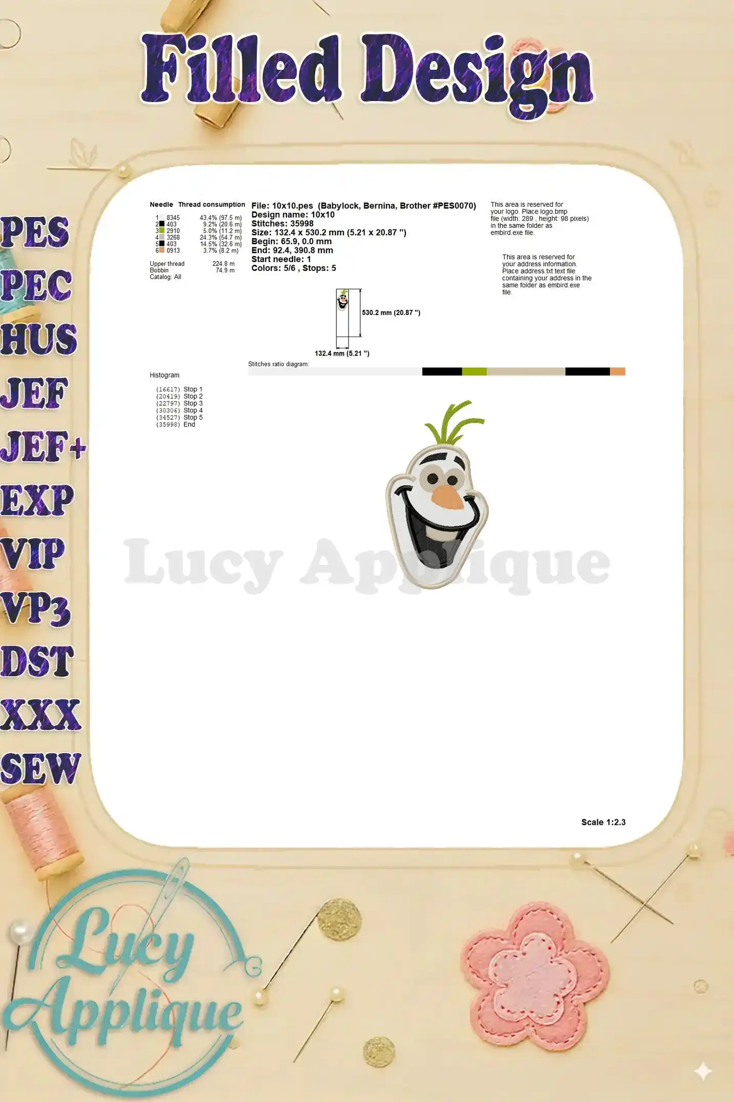 Frozen Snowman Fill Machine Embroidery Design – Instant Download