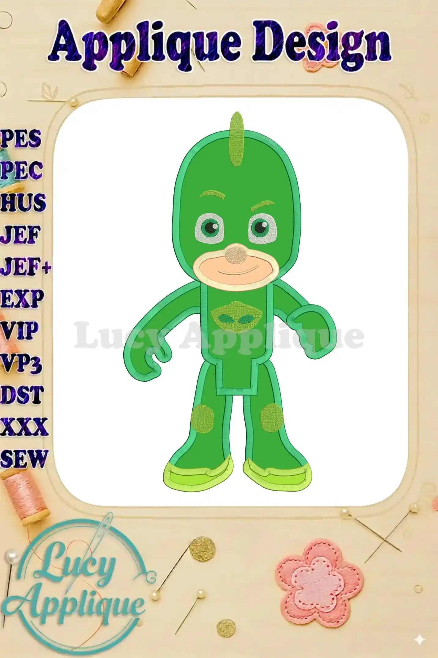 Gekko Pj Masks Applique Embroidery Design – Instant Download