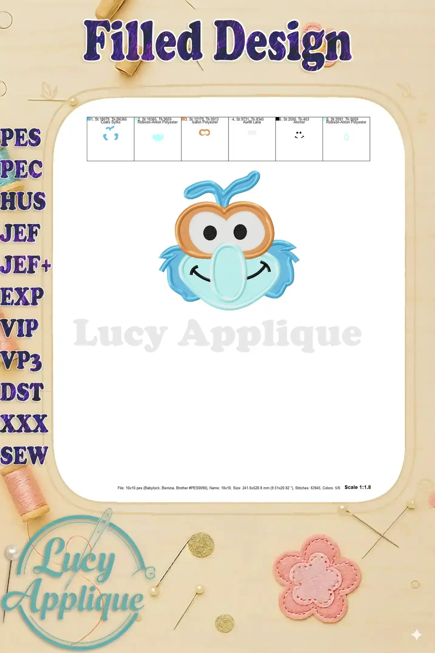 Gonzo Muppet Baby Head 01 Fill Machine Embroidery Design – Instant Download