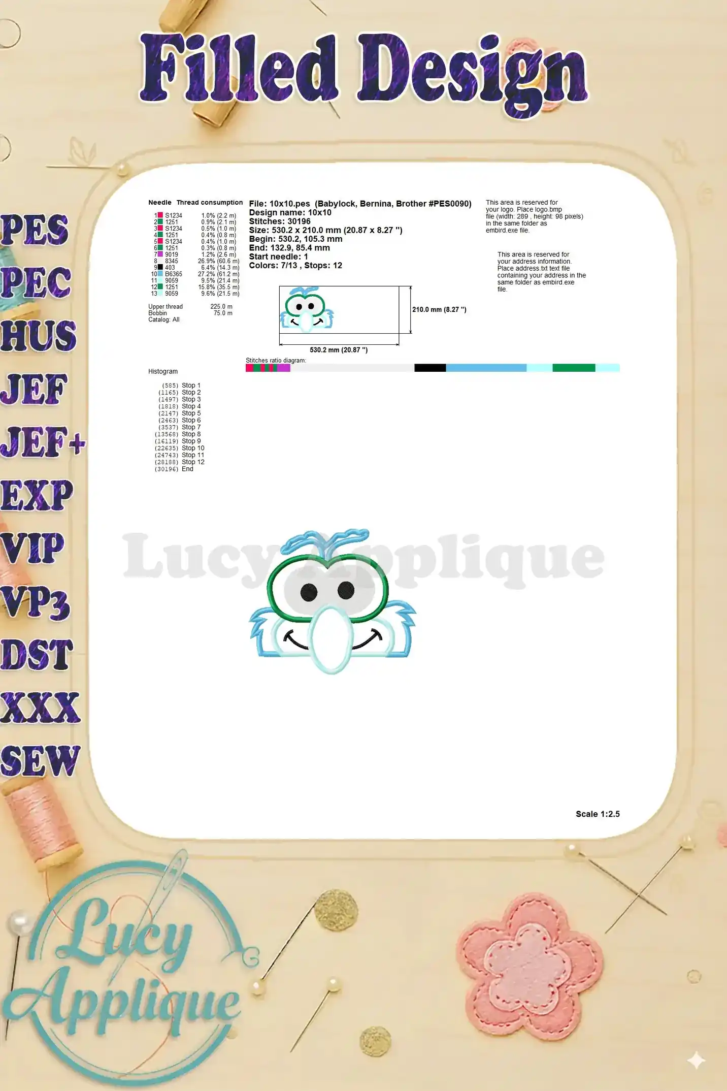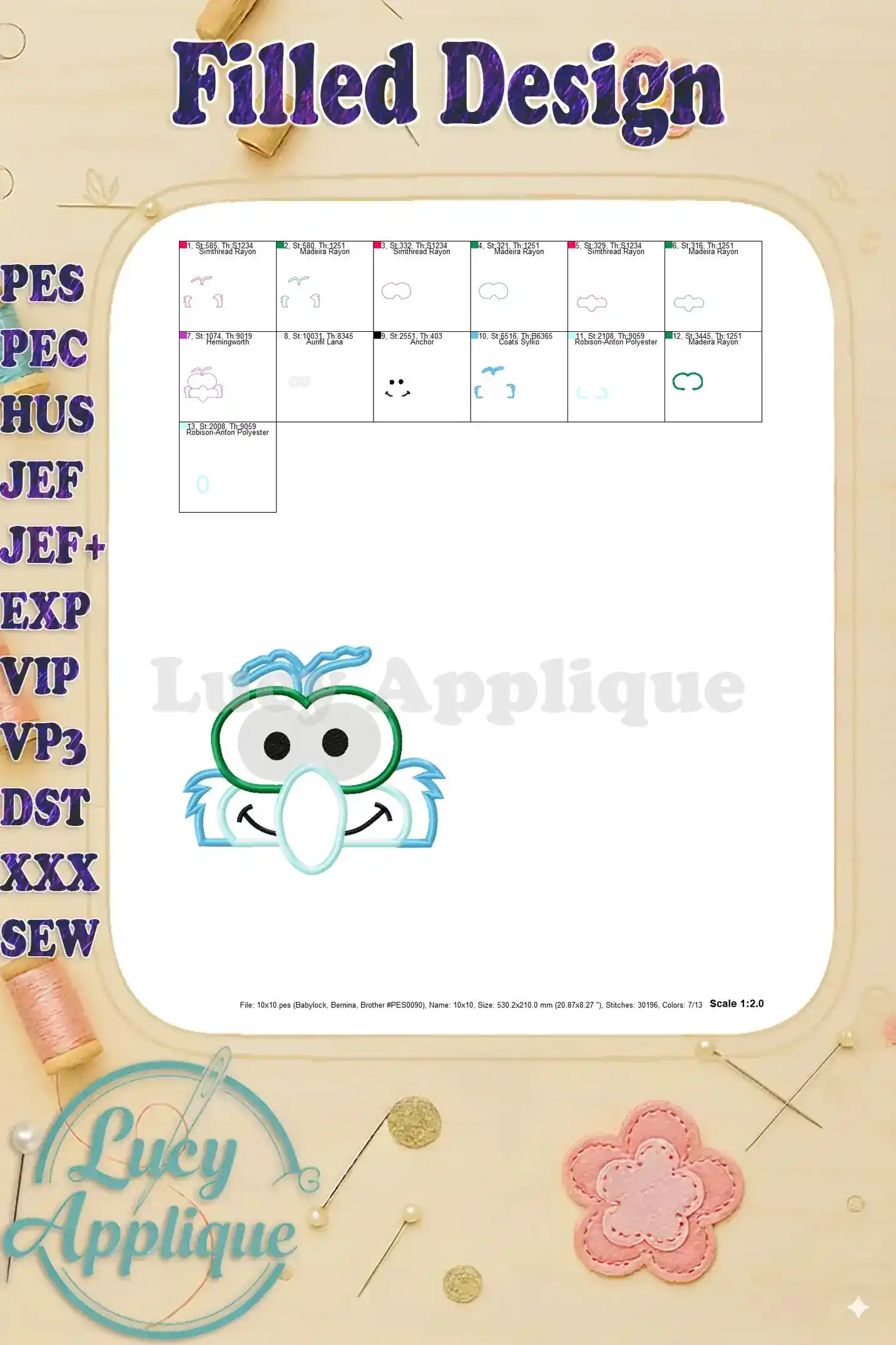 Gonzo Muppet Baby Head 02 Applique Embroidery Design – Instant Download