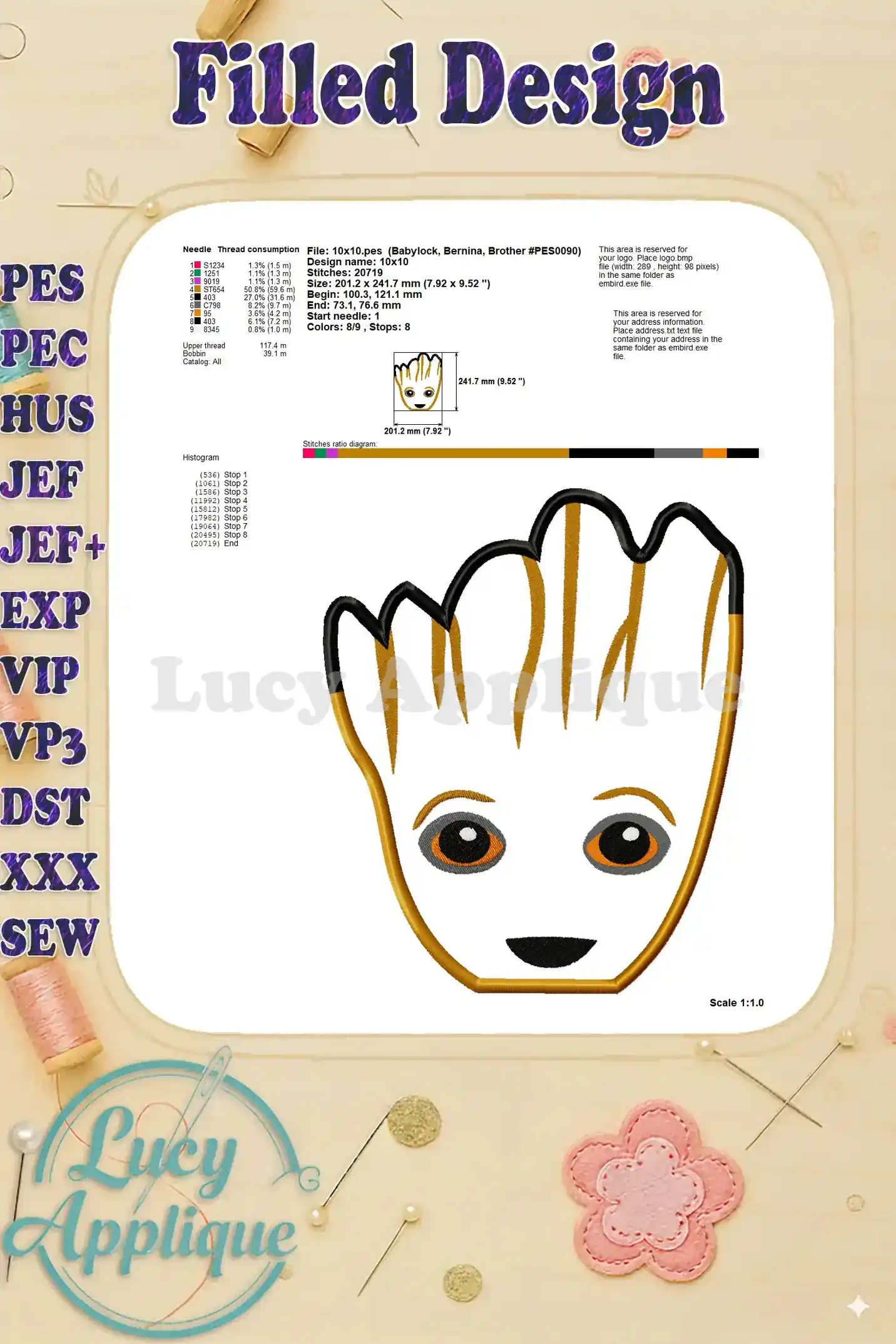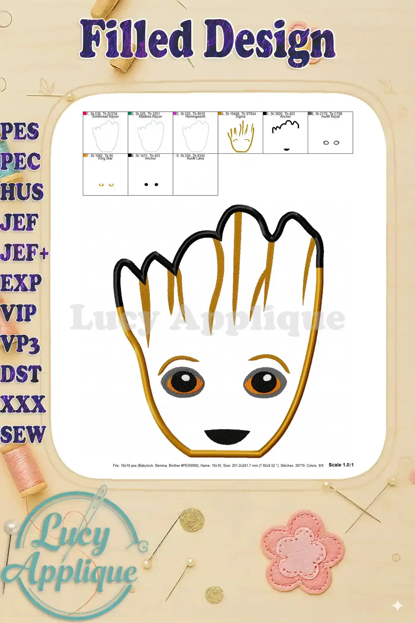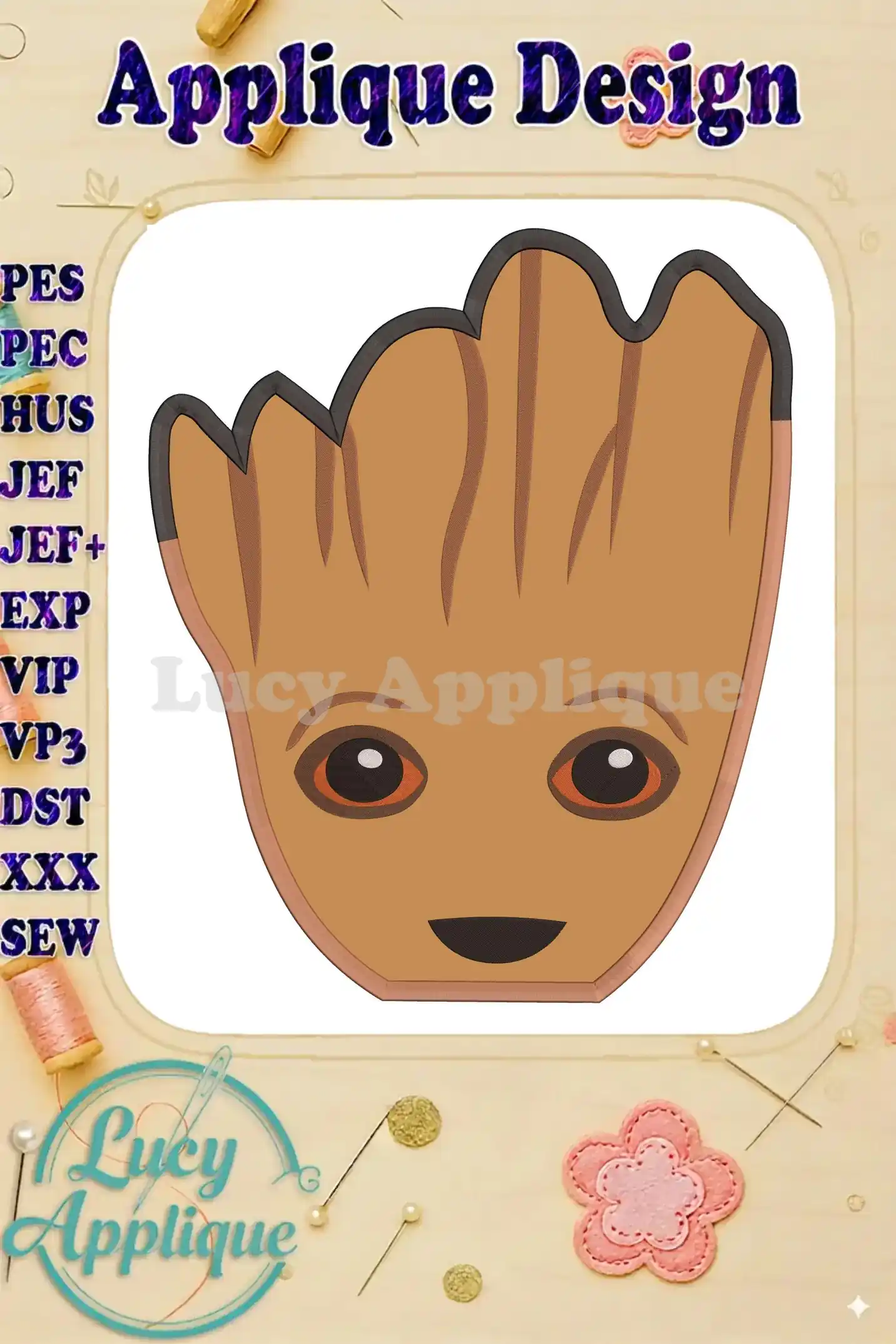 Groot Guardians of the Galaxy Head Applique Embroidery Design – Instant Download