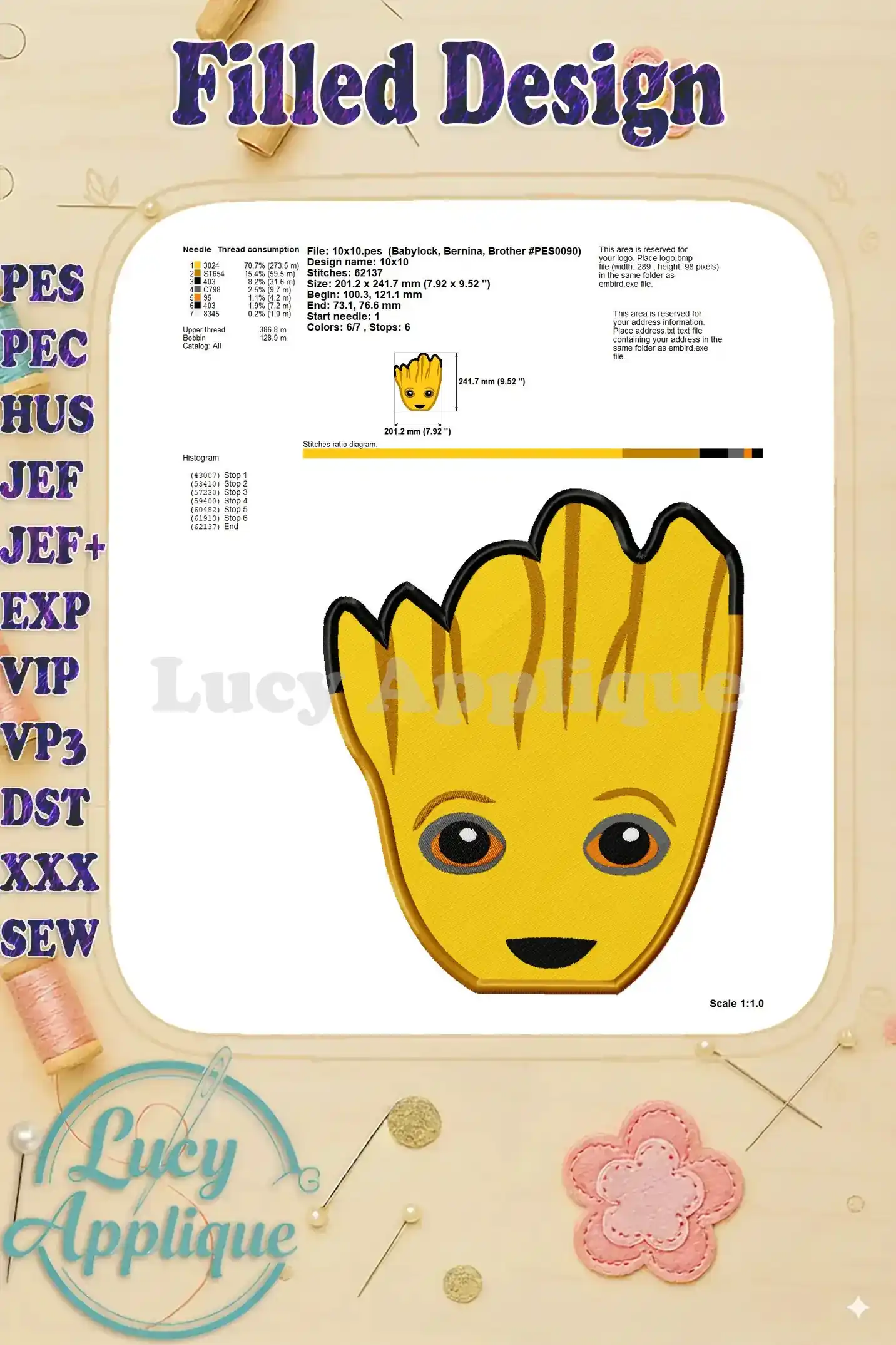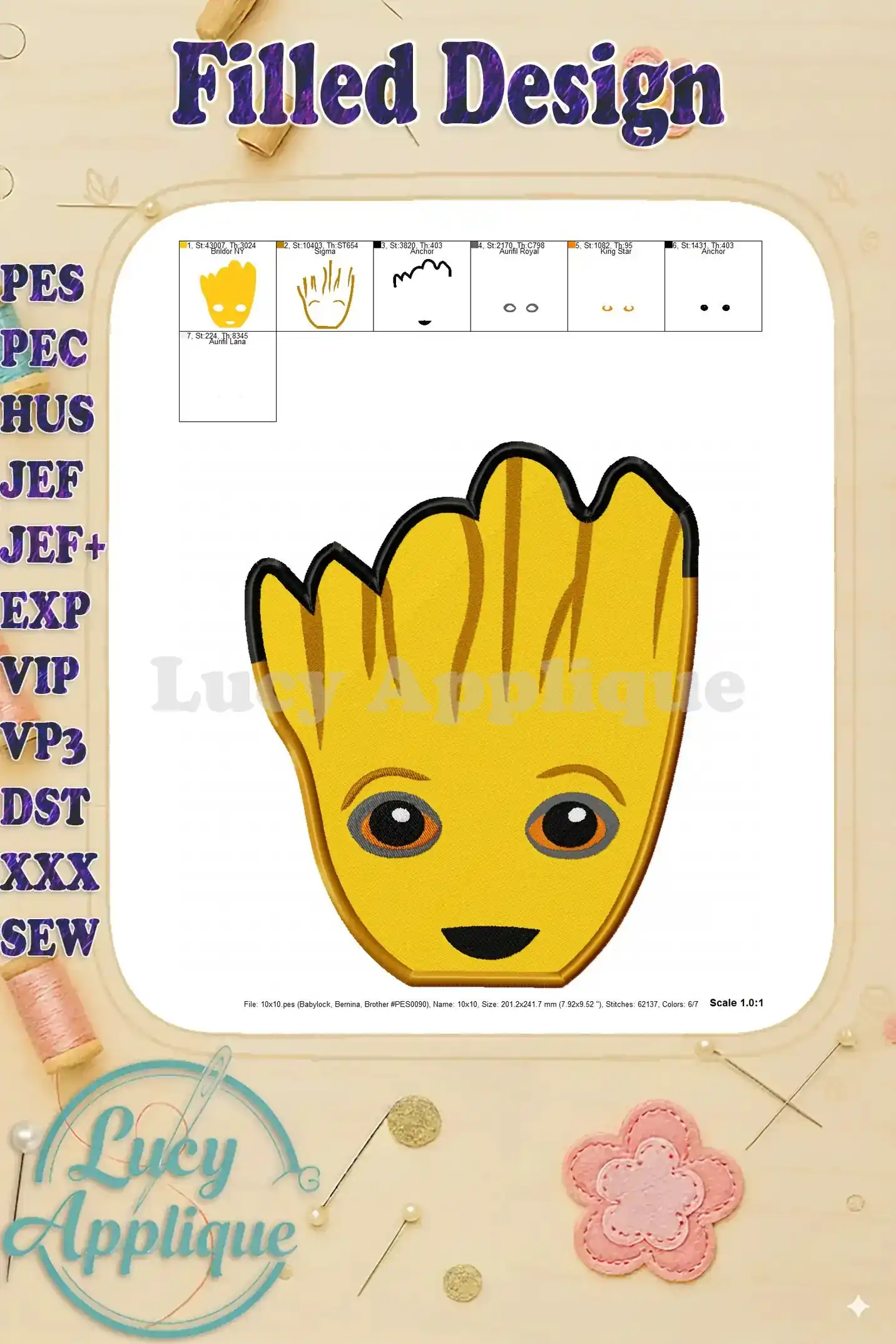 Groot Guardians of the Galaxy Head Fill Machine Embroidery Design – Instant Download