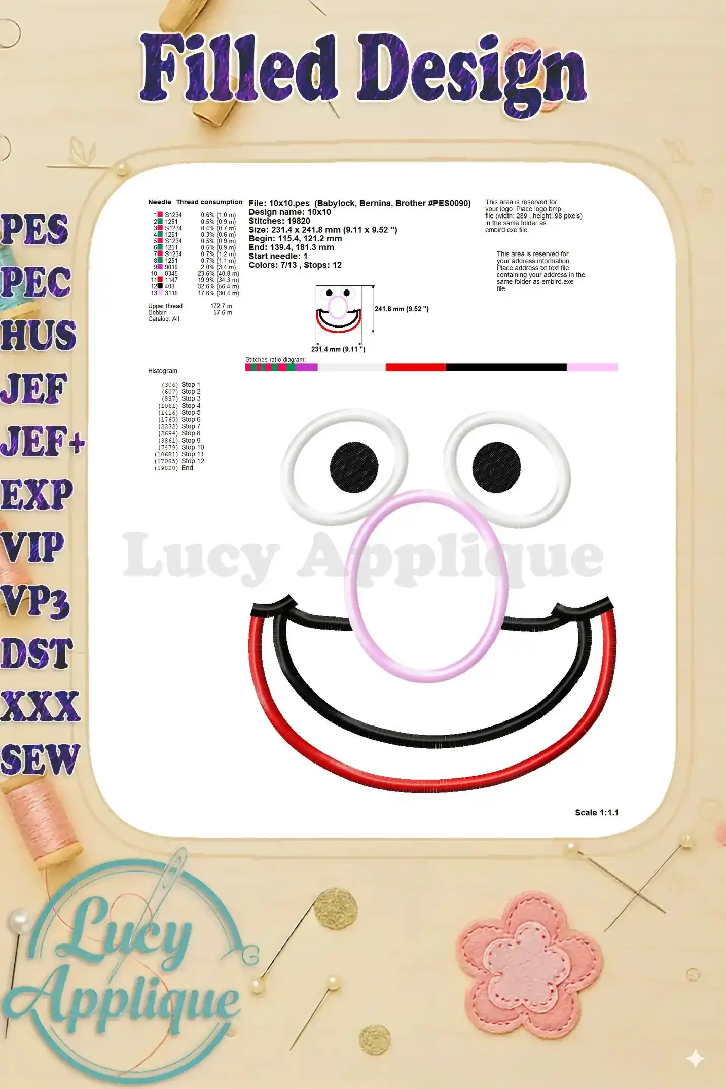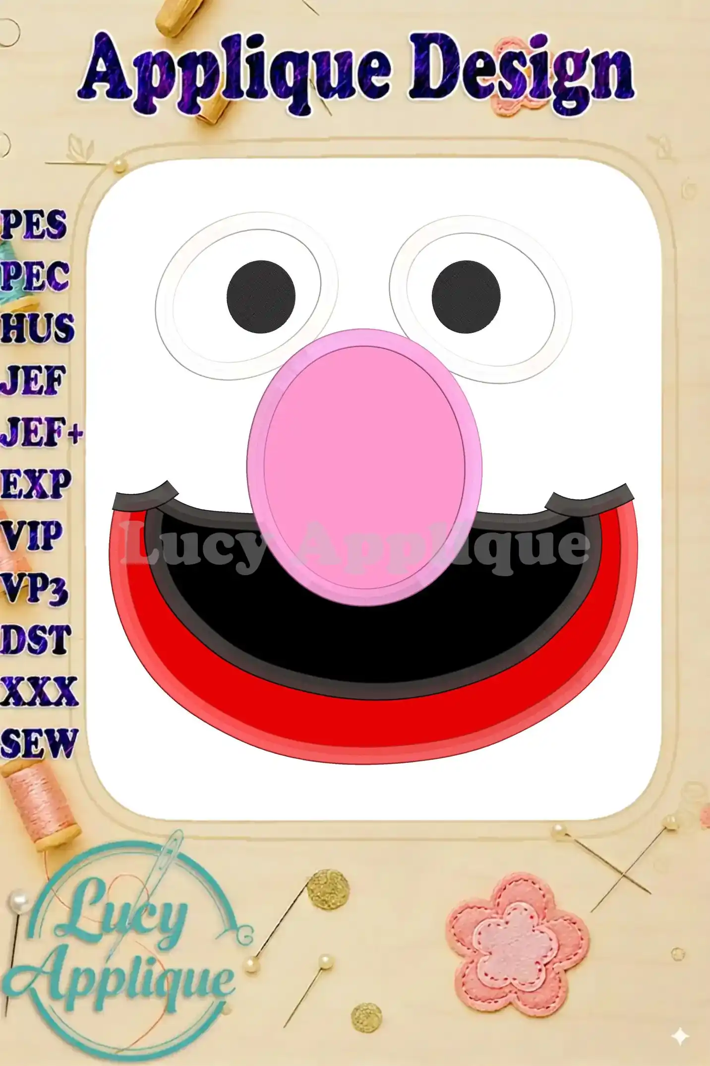 Grover Sesame Street Face Applique Embroidery Design – Instant Download