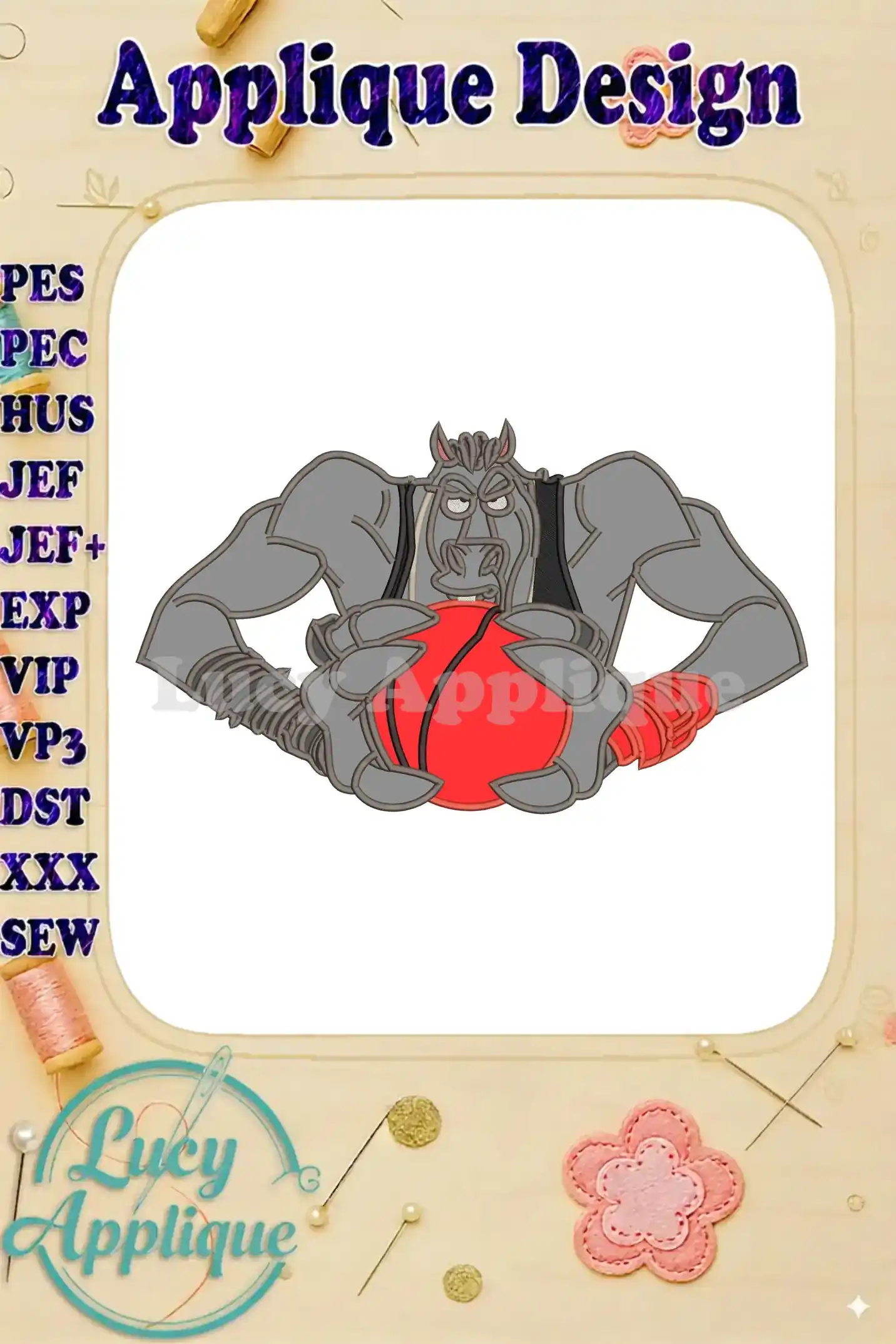Grumpy Muscular Goat with Basketball Applique Embroidery Designs