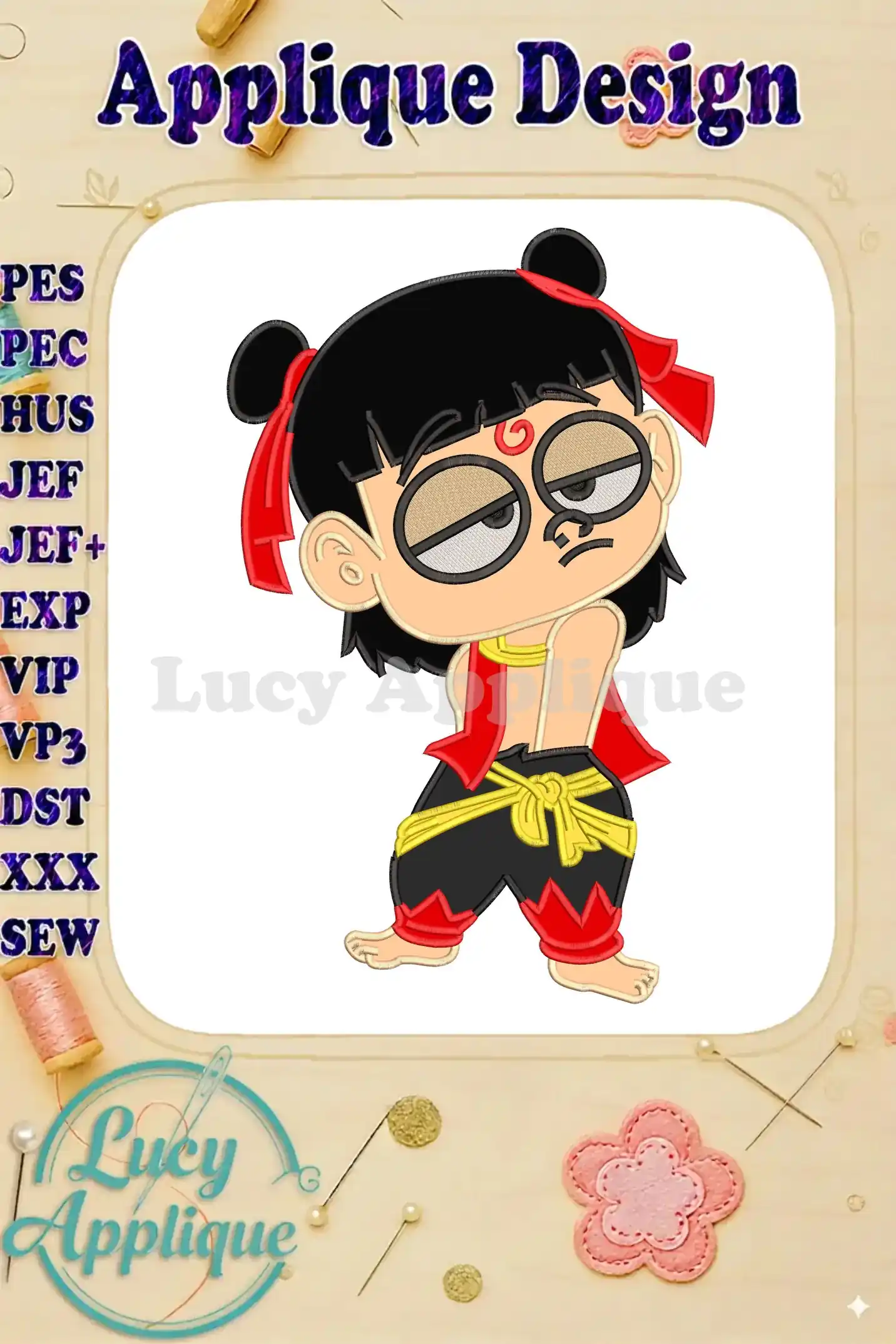 Grumpy Ne Zha 2 Applique Child Character Embroidery Designs