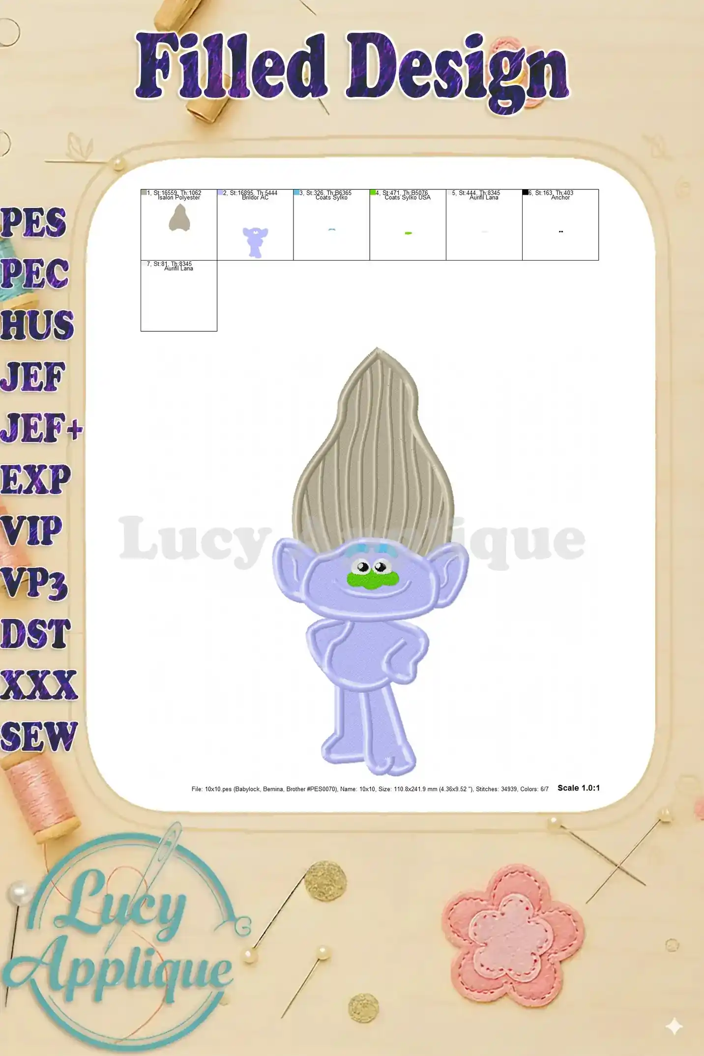 Guy Diamond Trolls Fill Machine 01 Embroidery Design – Instant Download