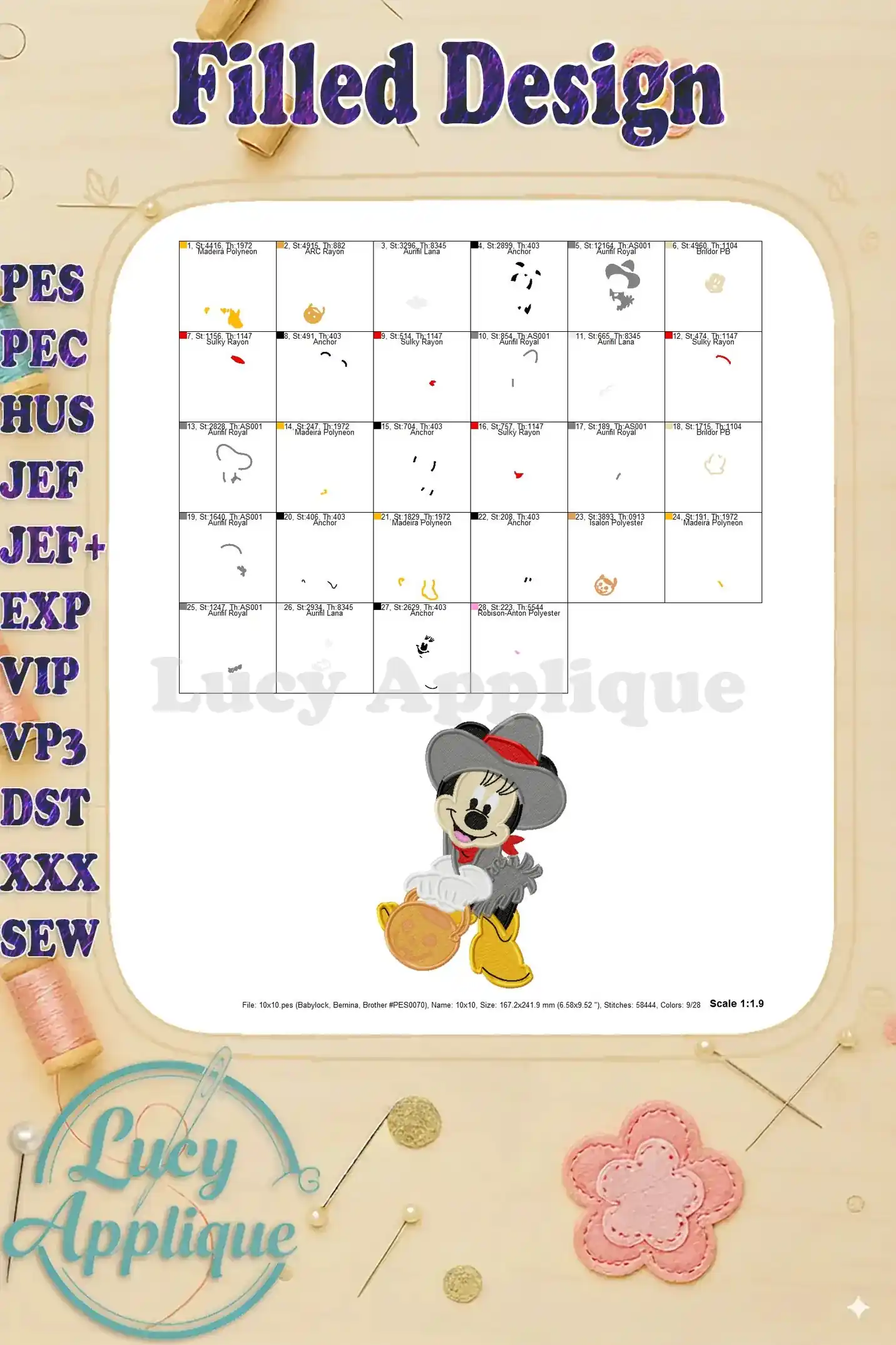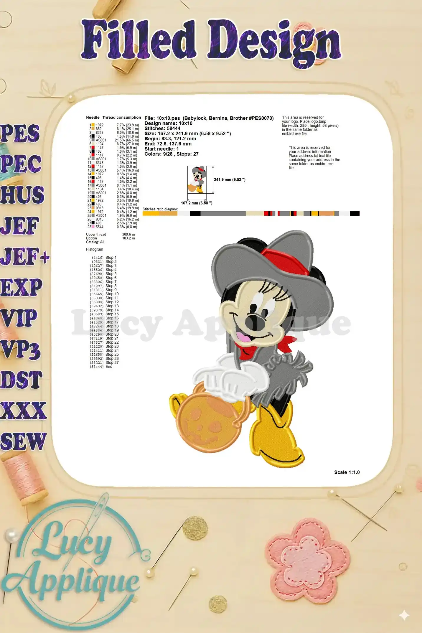 Halloween Minnie Mouse Fill Embroidery Design – Instant Download
