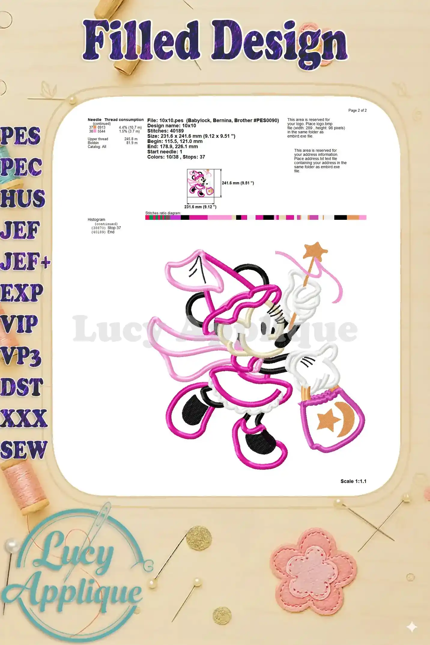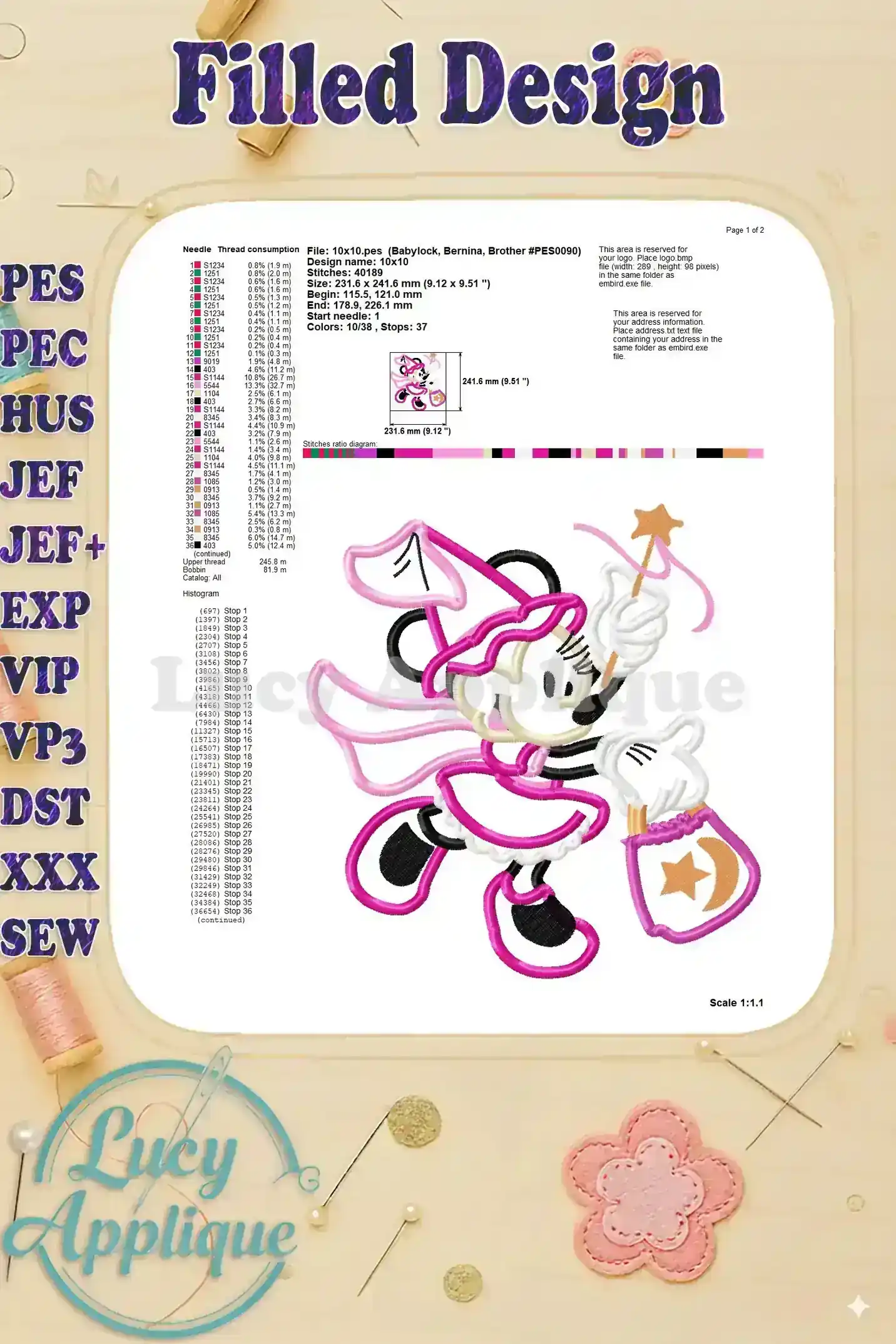 Halloween Witch Minnie Mouse Applique Design – Instant Download