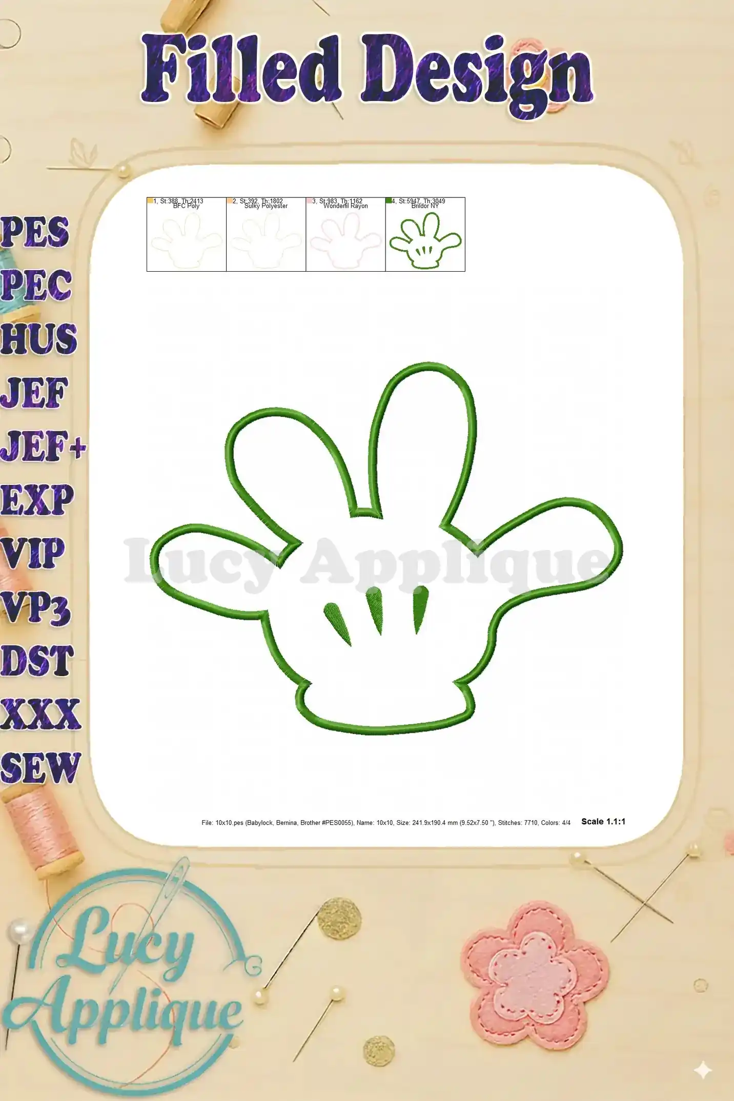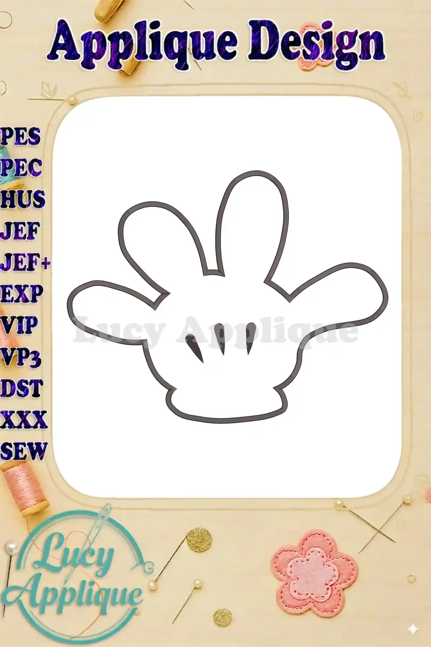 Hand Mickey Mouse Applique Embroidery Design – Instant Download