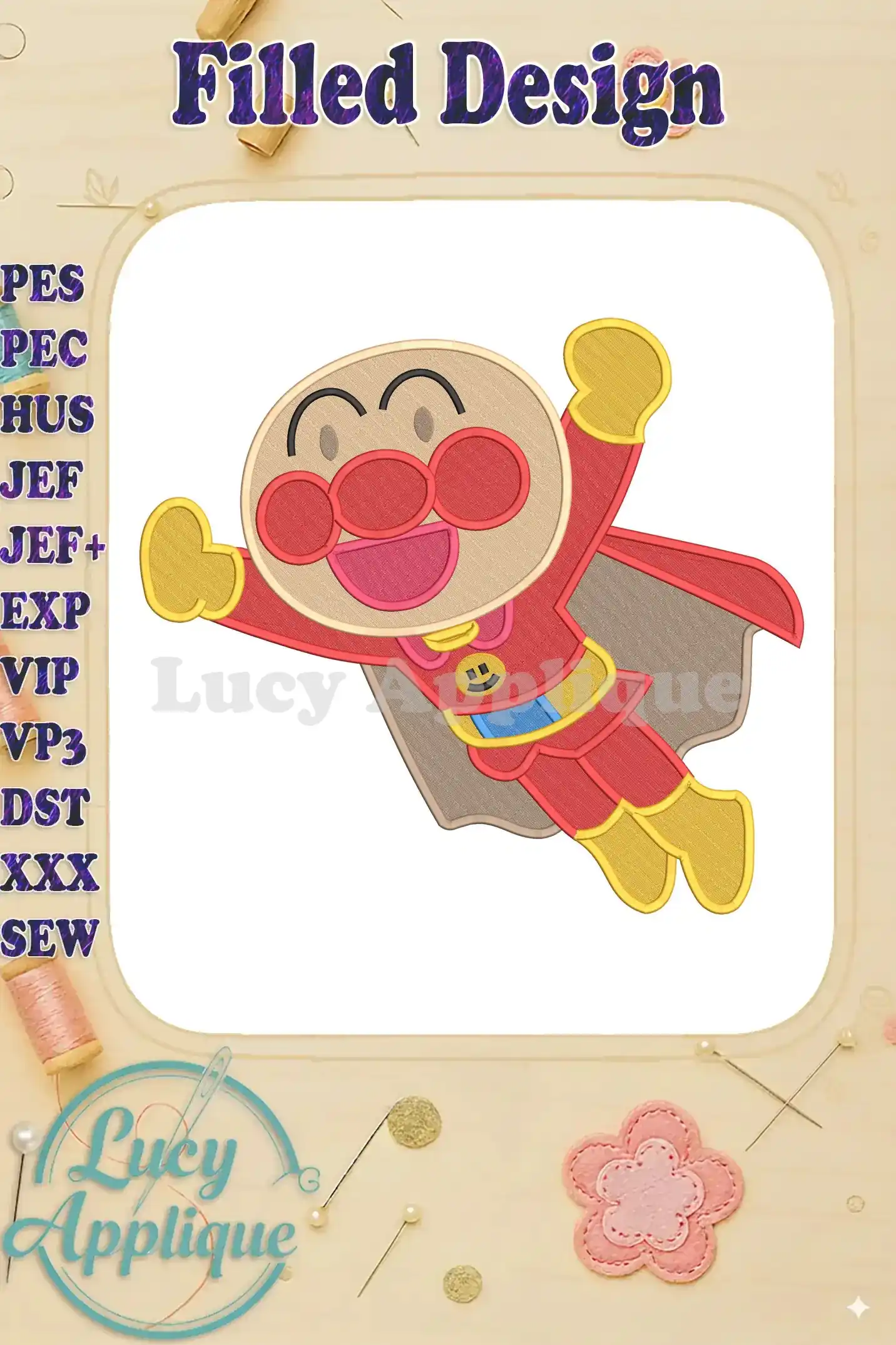 Happy Flying Anpanman Chapon’s Hero Fill Embroidery Designs