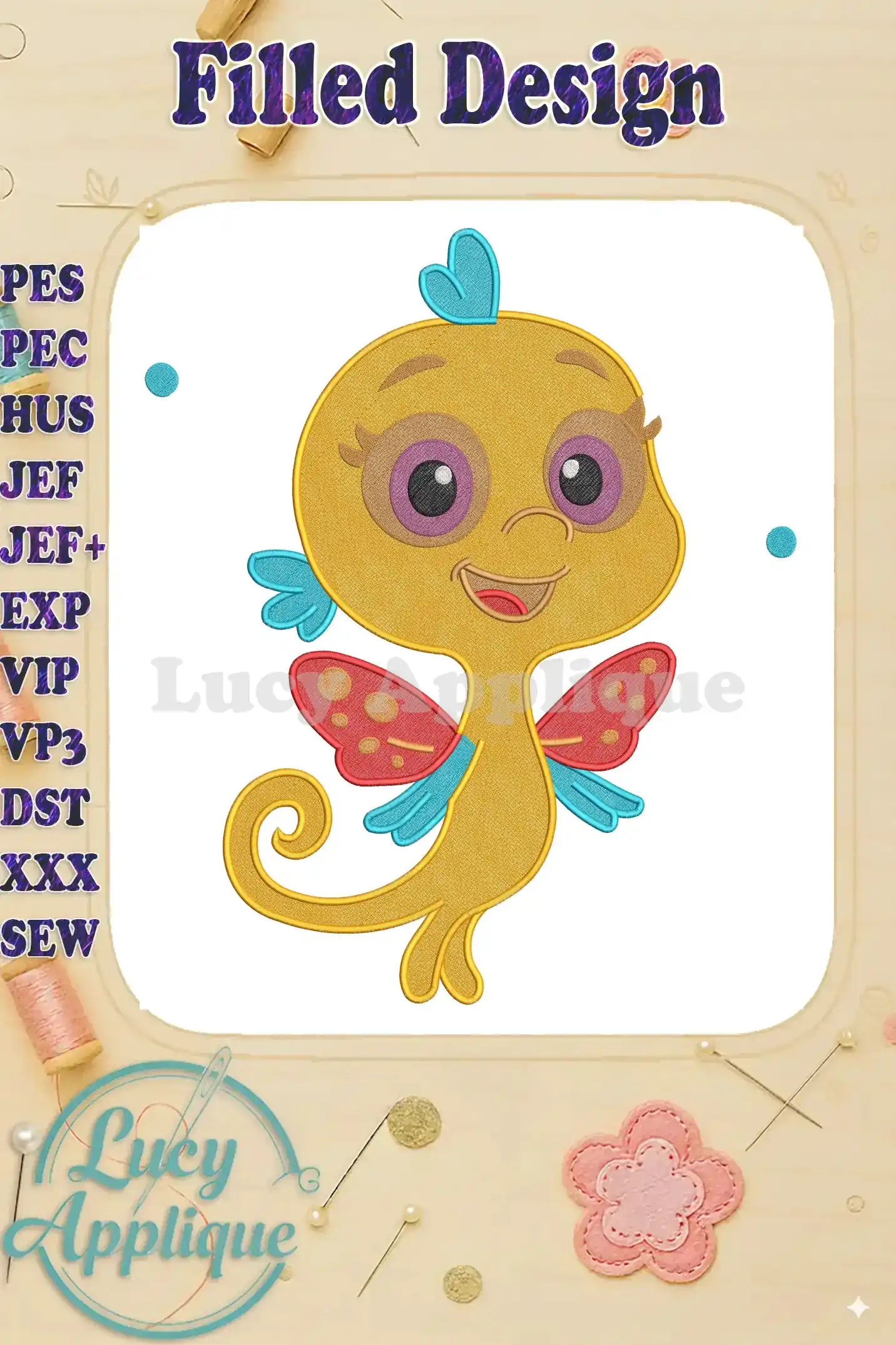 Happy Pout-Pout Fish winged creature fill embroidery designs
