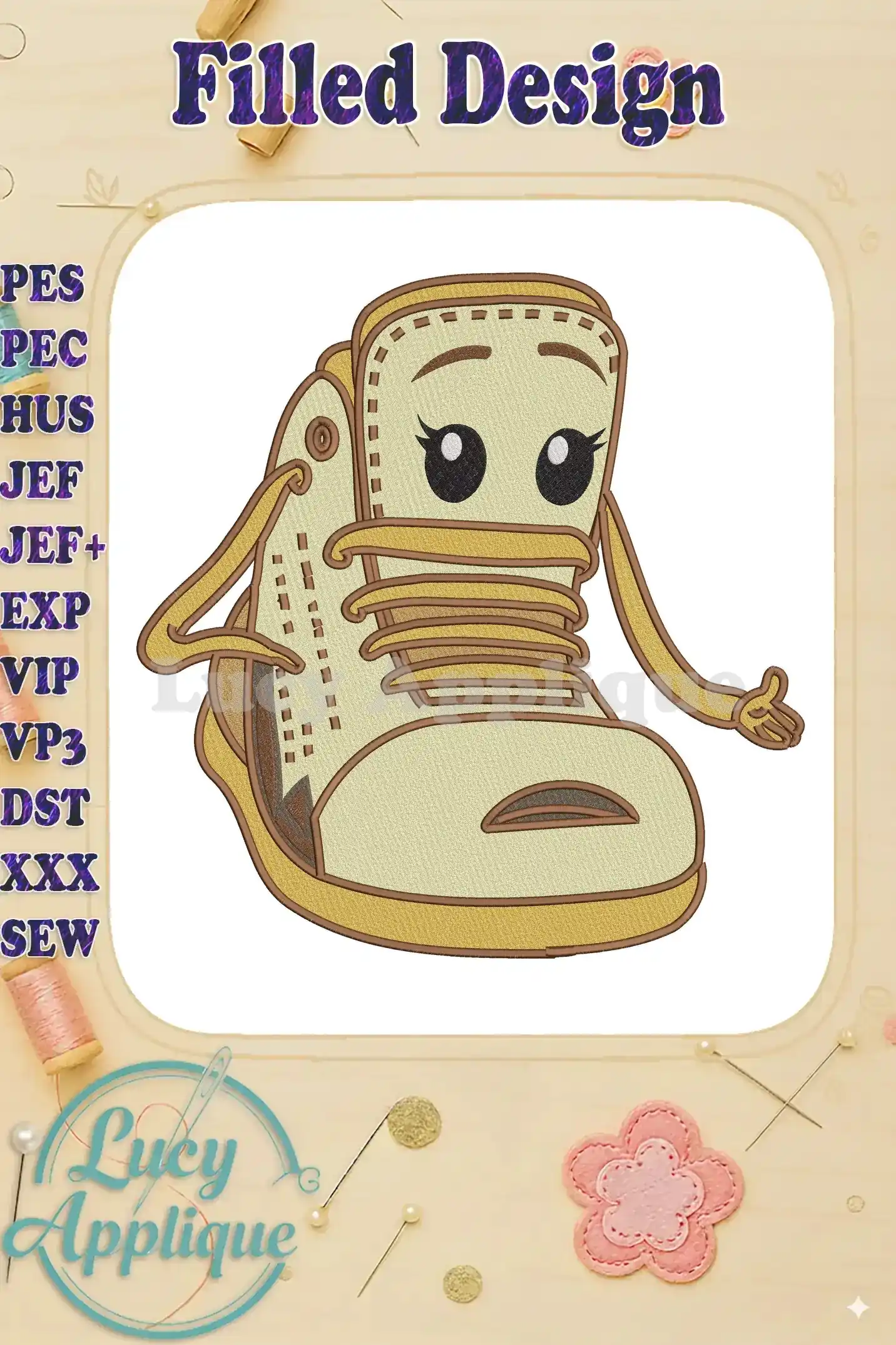 Happy Sneaks Cartoon Fill Embroidery Designs for Kids Apparel