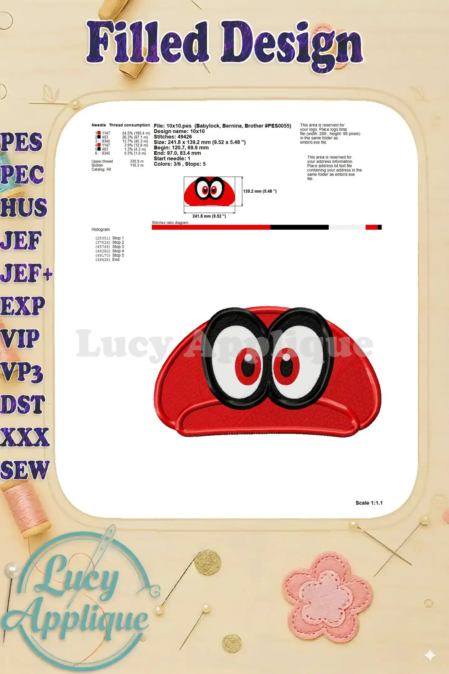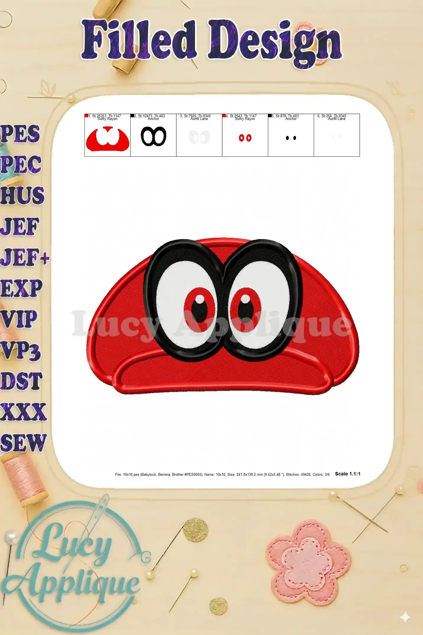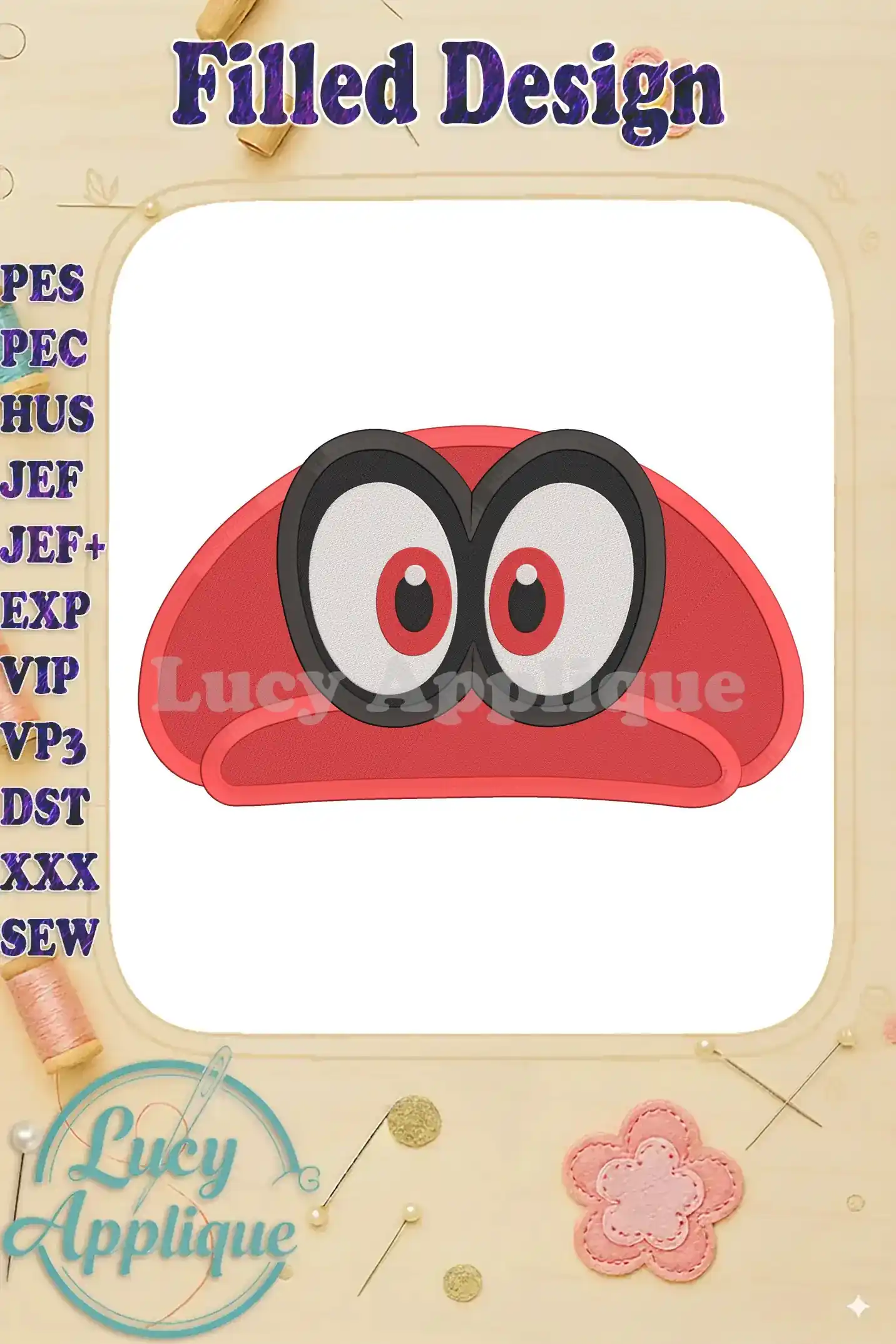 Hat Super Mario Odyssey Fill Machine 01 Embroidery Design – Instant Download