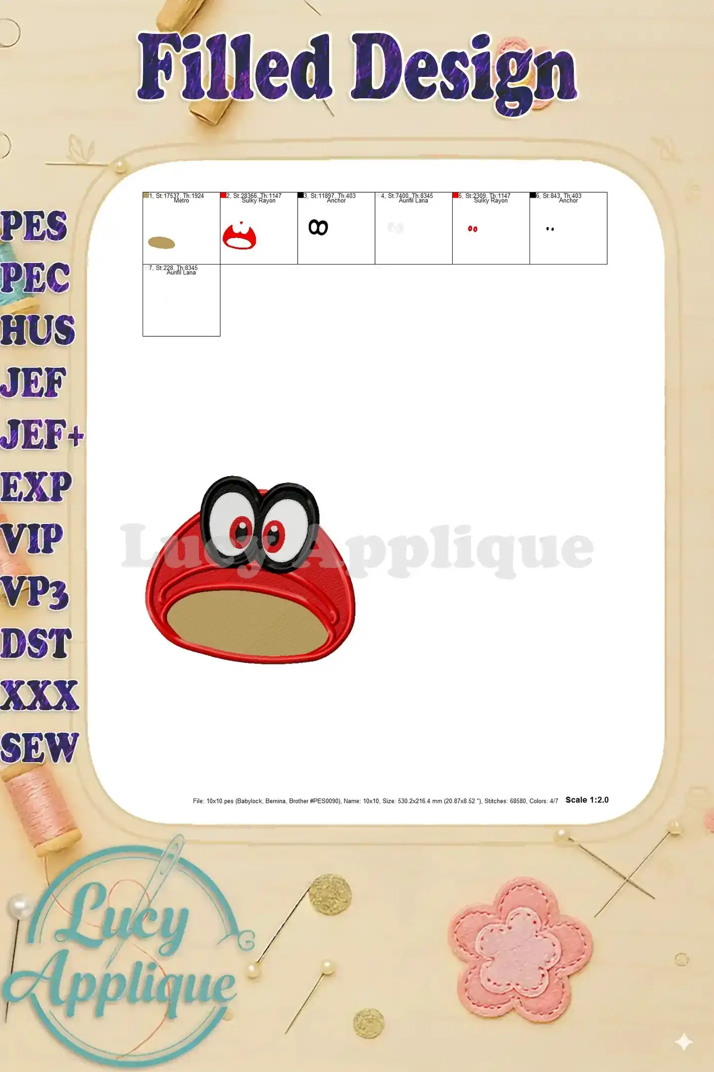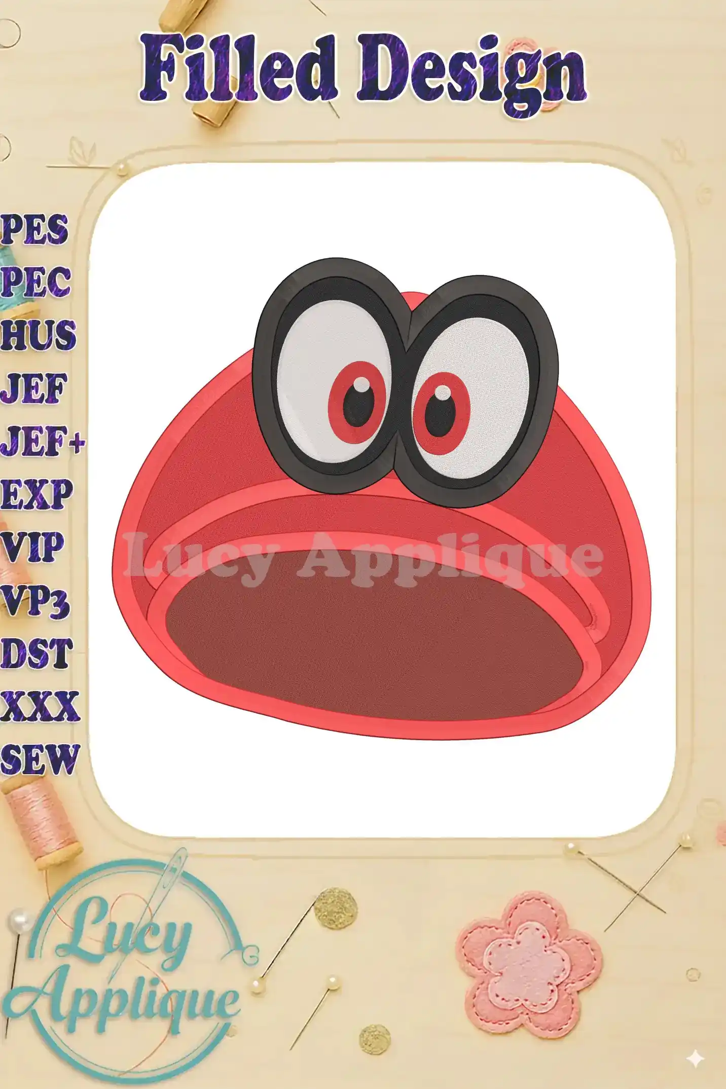 Hat Super Mario Odyssey Fill Machine 03 Embroidery Design – Instant Download