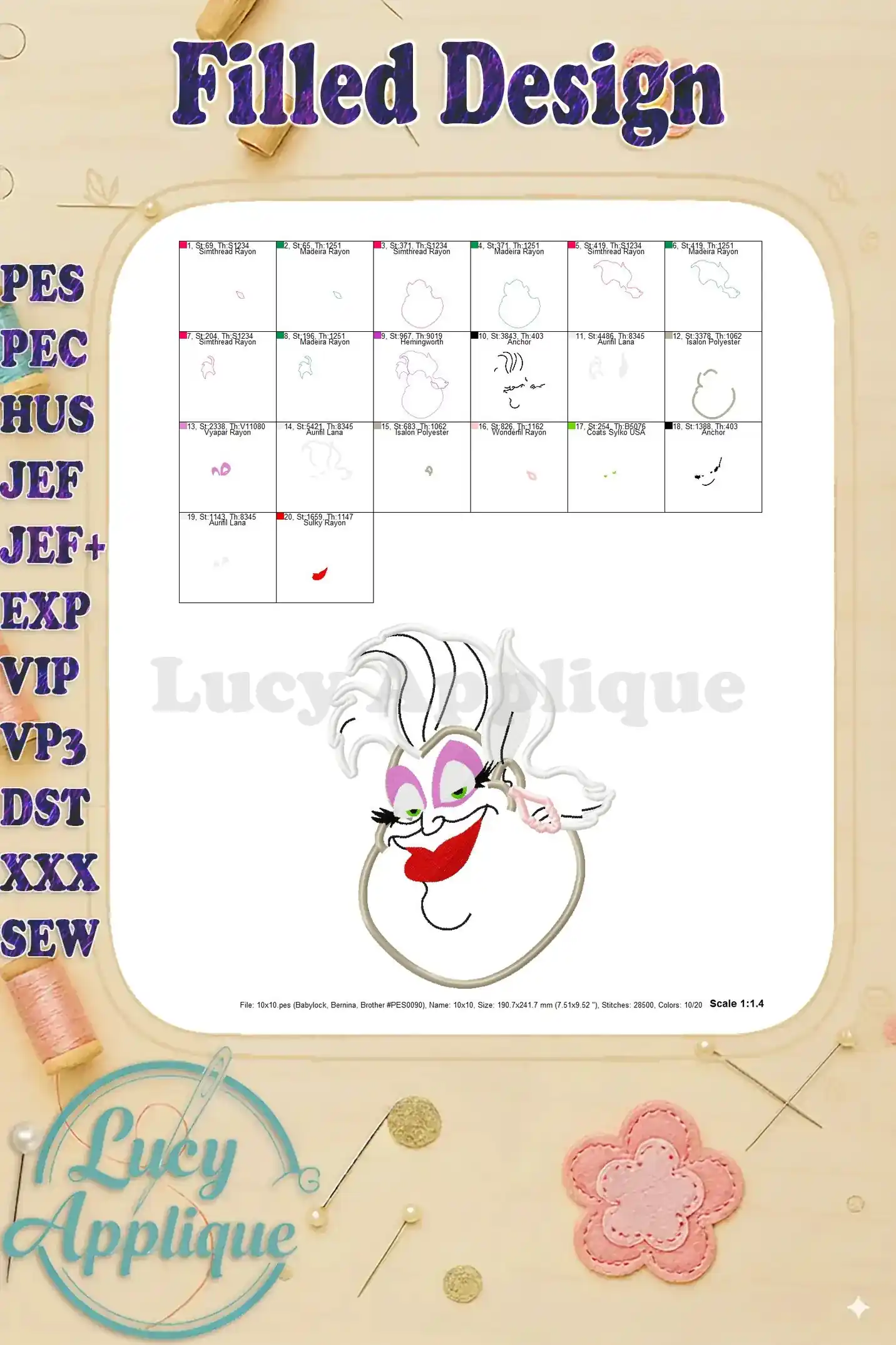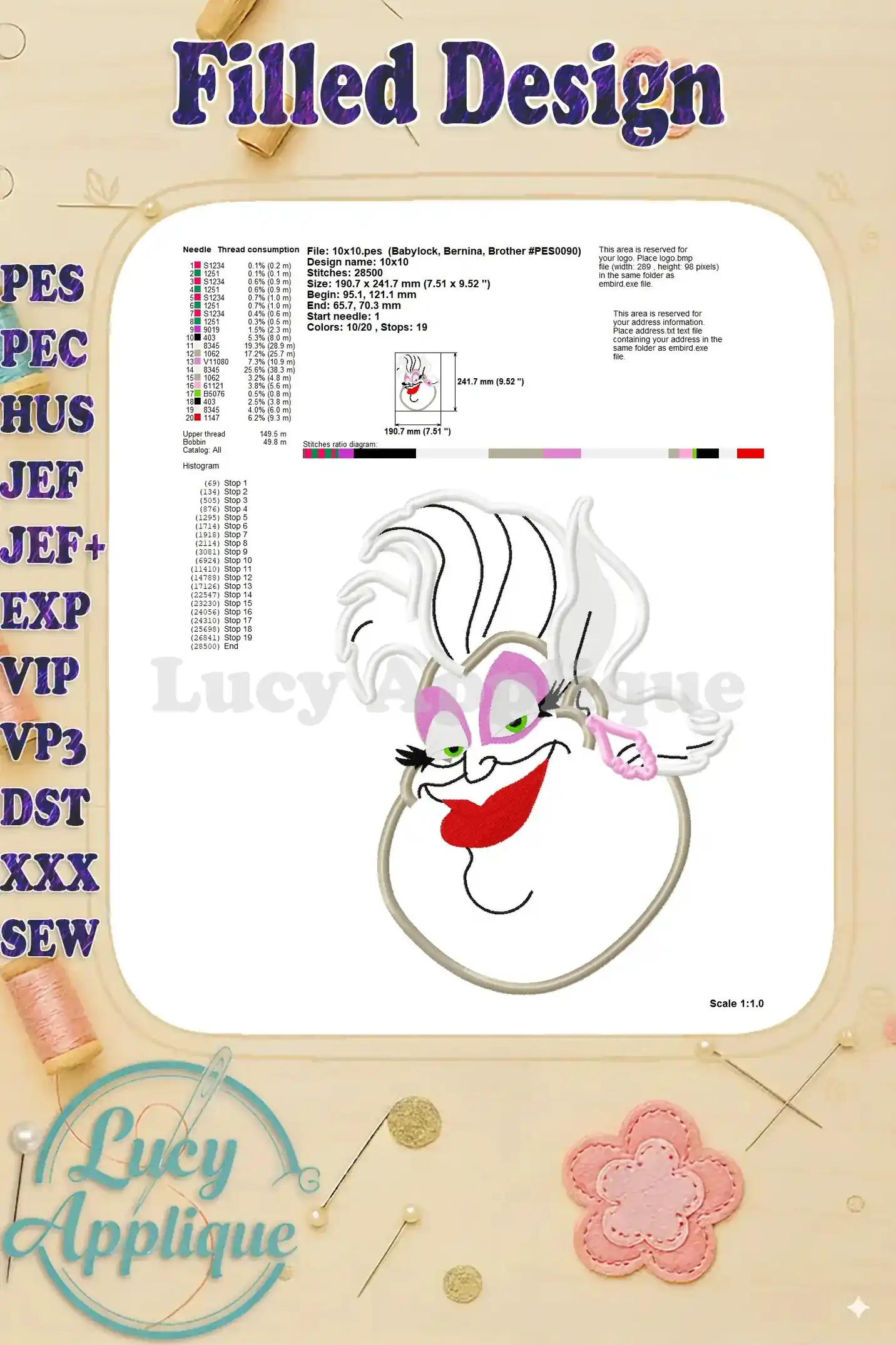 Head Ursula The Little Mermaid Applique Design – Instant Download