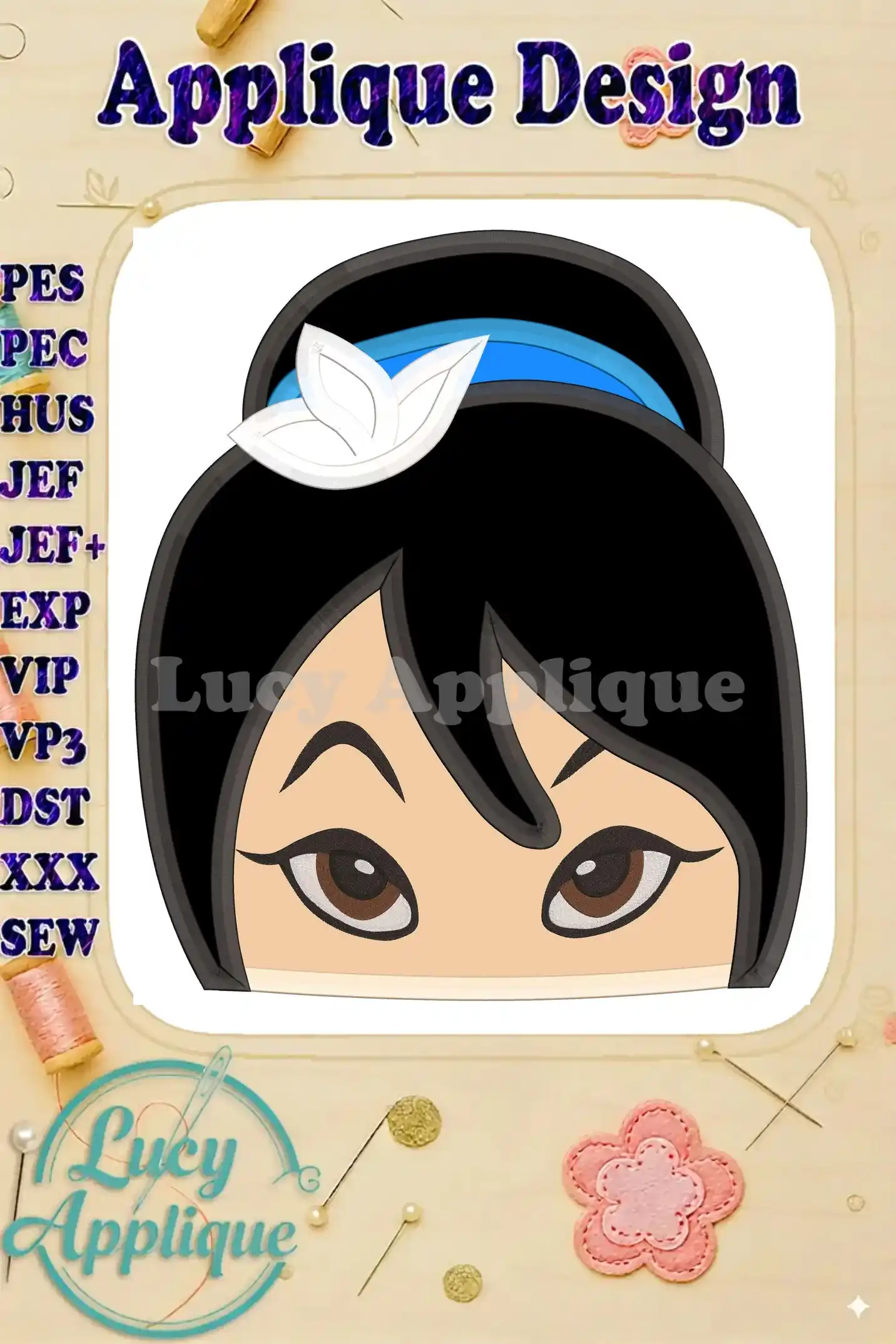 Head Warrior Princess Applique Embroidery Design – Instant Download