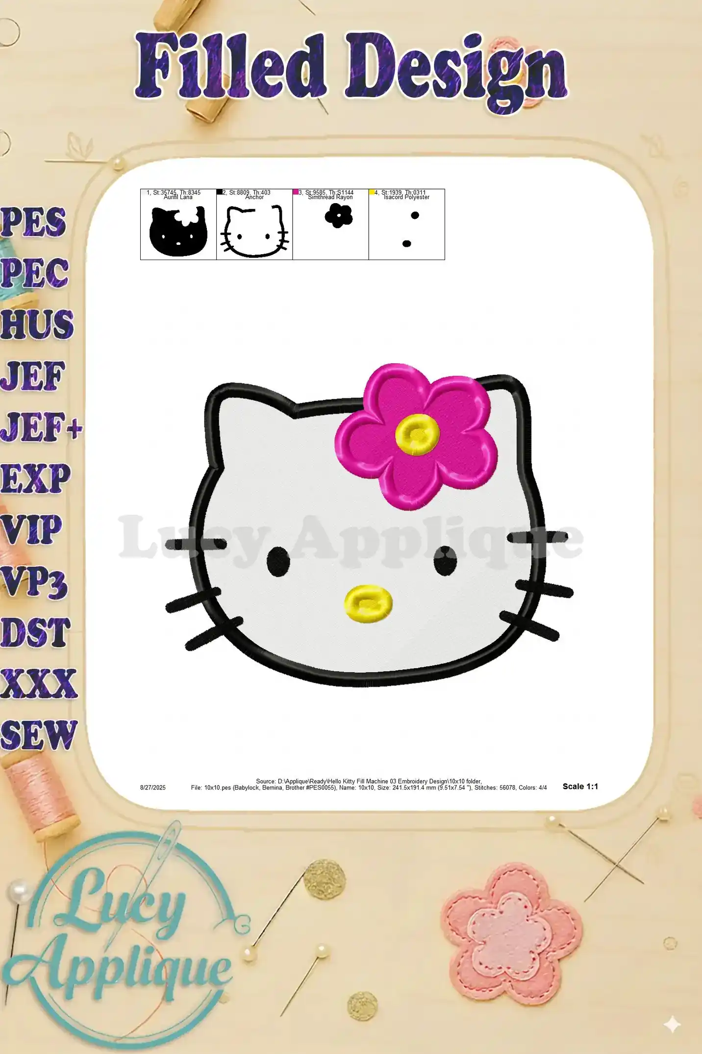 Hello Kitty Fill Machine 03 Embroidery Design – Instant Download