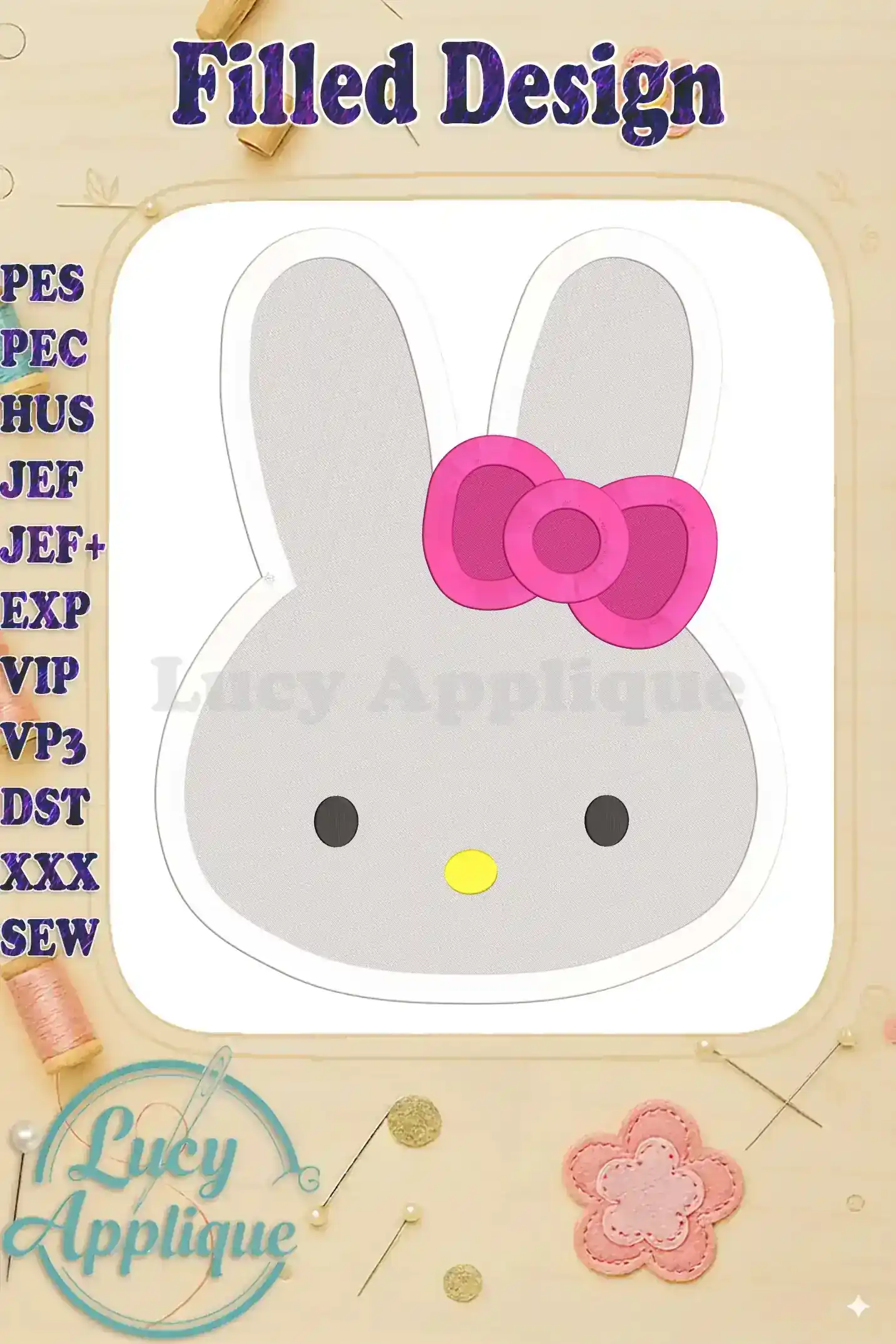 Hello Kitty Head Fill Machine Embroidery Design – Instant Download