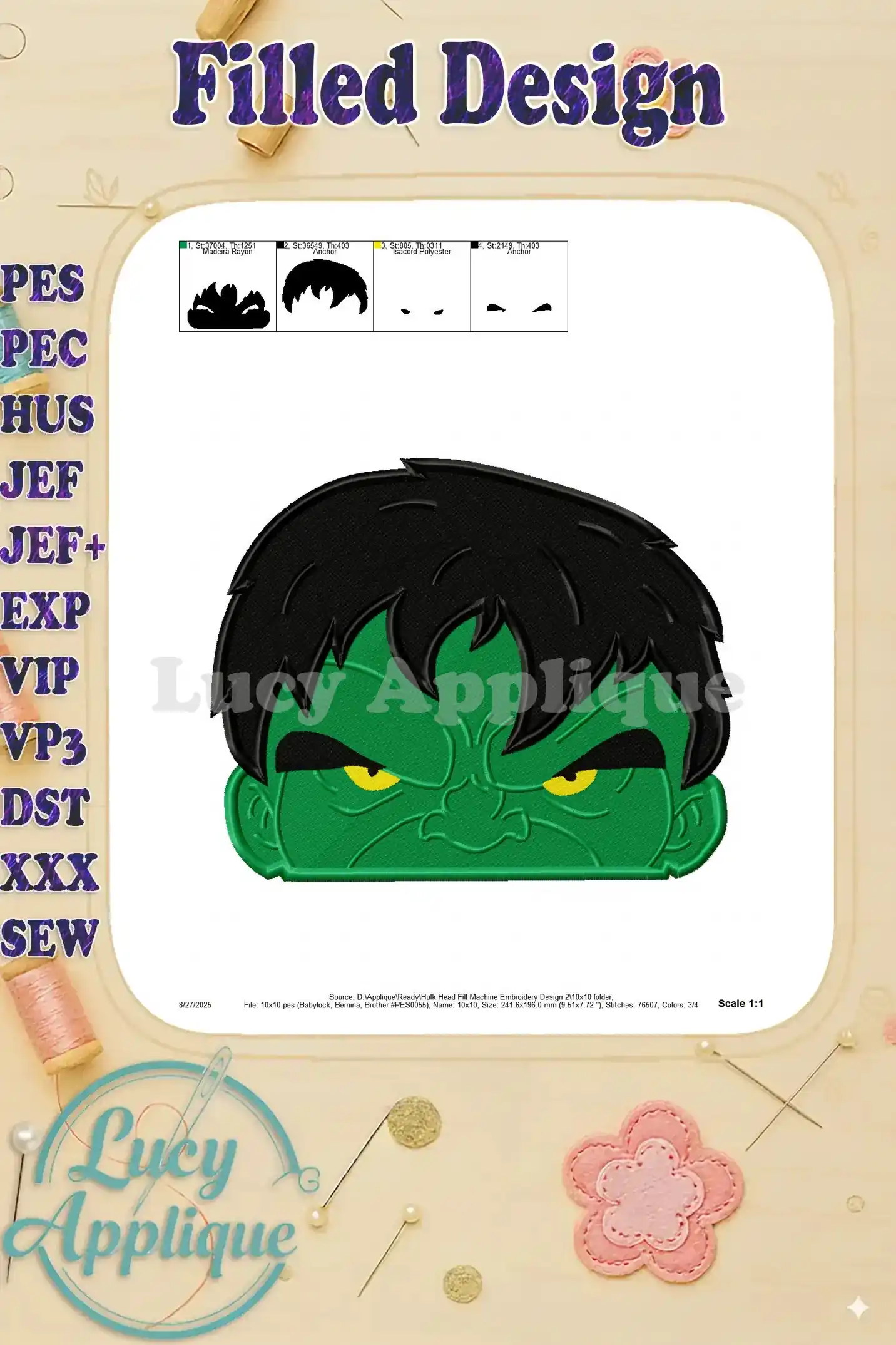 Hulk Head Fill Machine Embroidery Design 2 – Instant Download