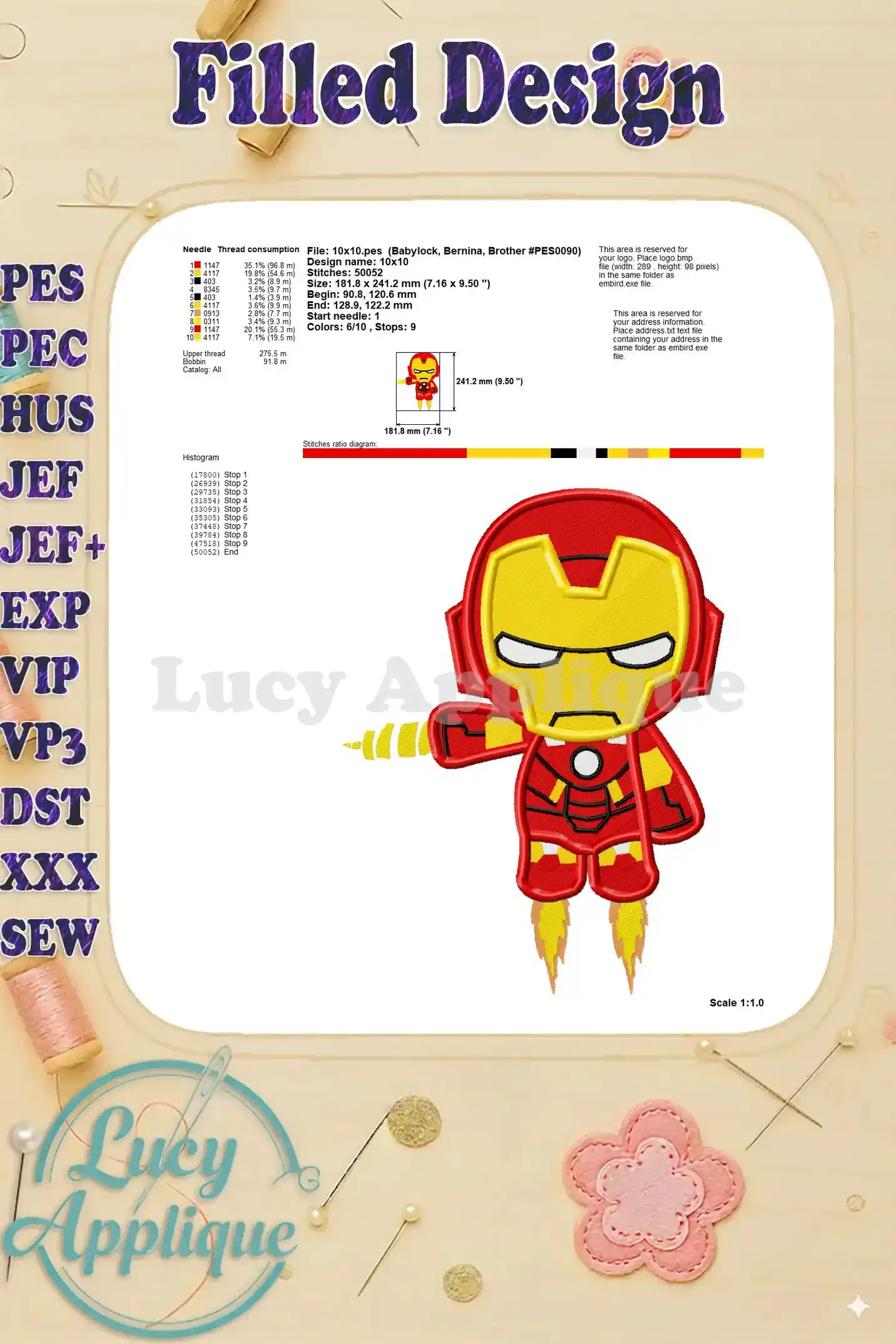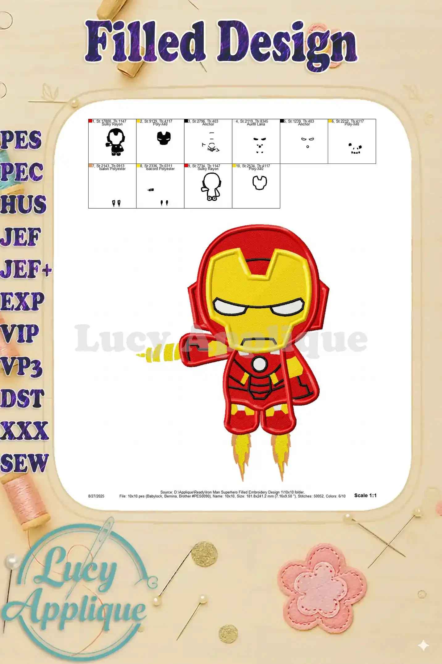 Iron Man Superhero Filled Embroidery Design 1 – Instant Download