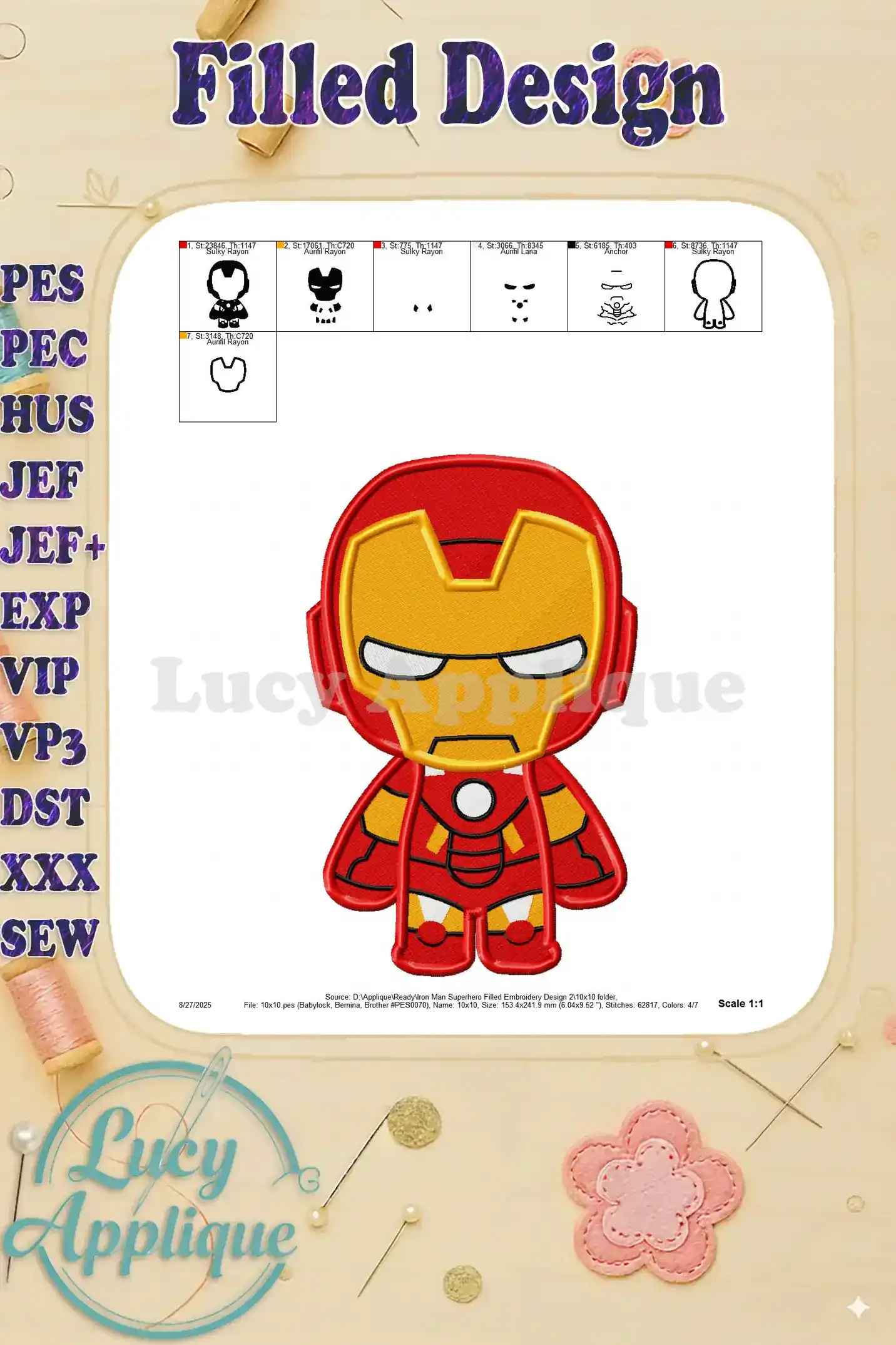 Iron Man Superhero Filled Embroidery Design 2 – Instant Download