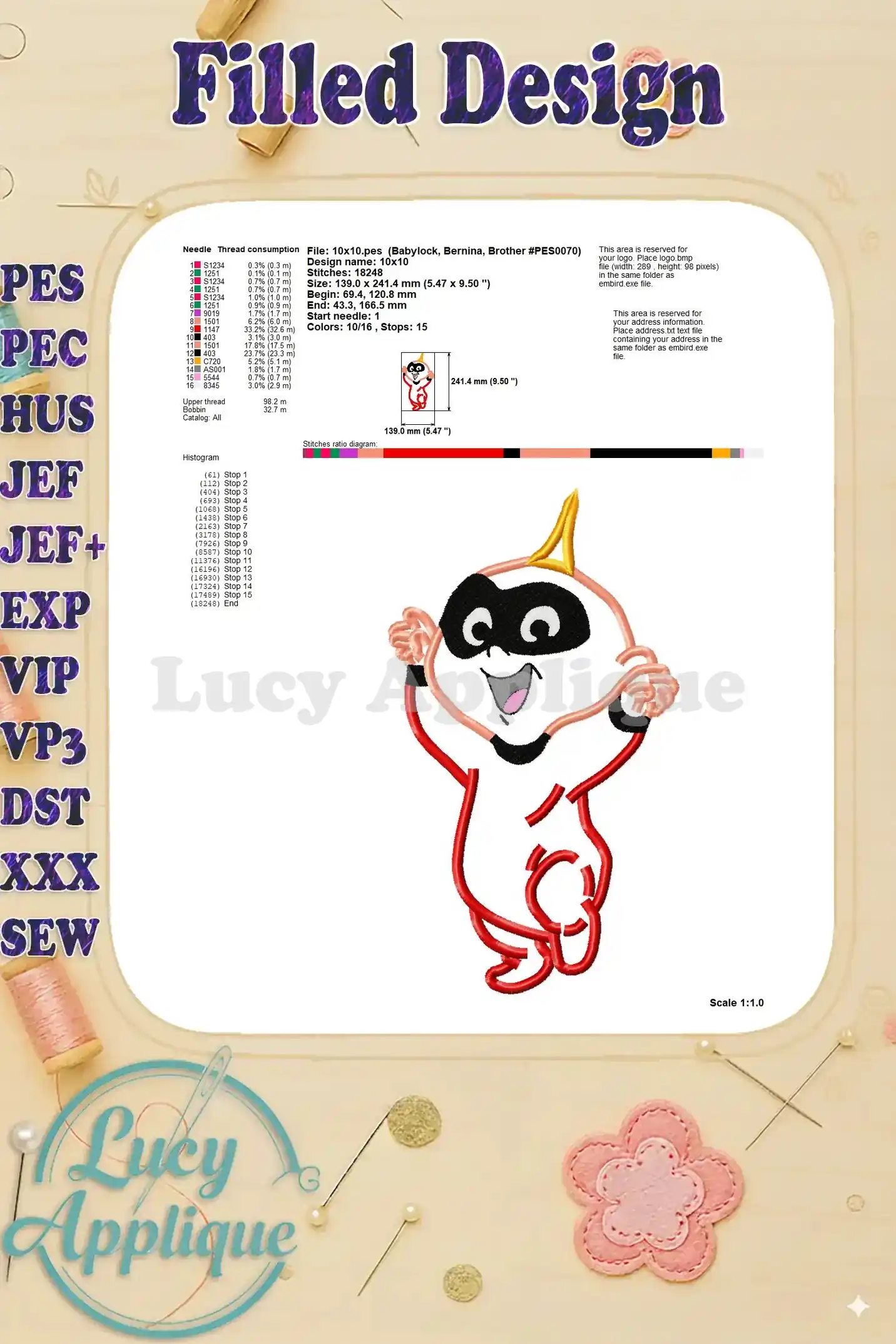 Jack Jack Parr The Incredibles Applique 02 Embroidery Design – Instant Download